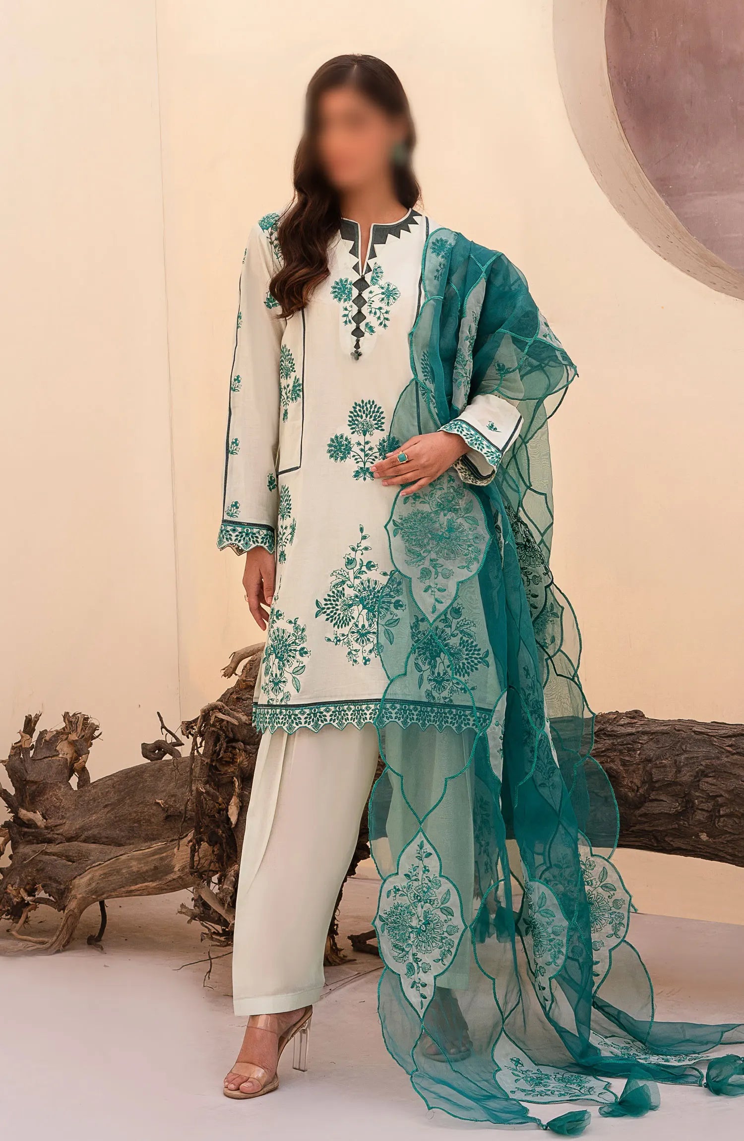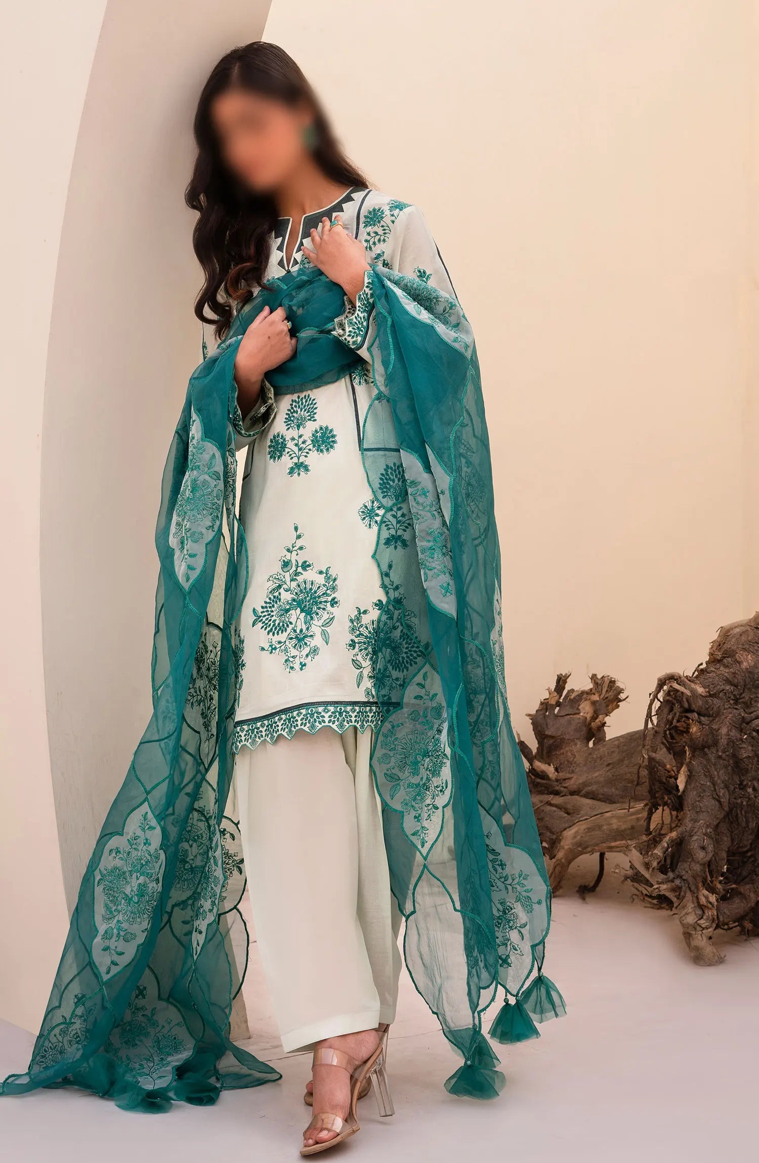Arzu Unstitched Luxury Lawn Collection 2024 By Humdum has been styled in the image for photography and illustrative purposes.