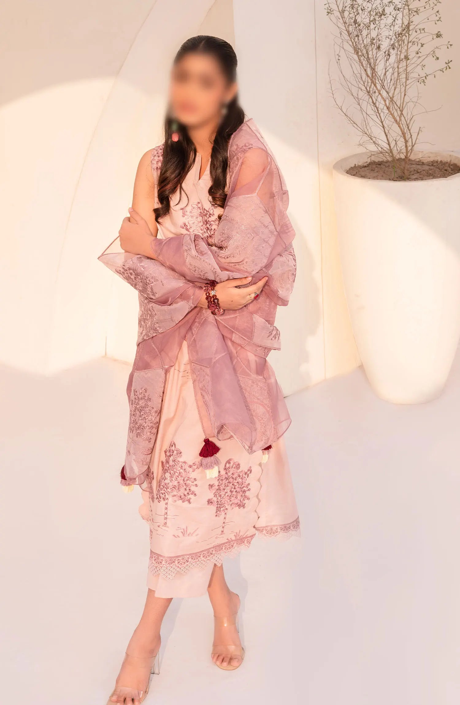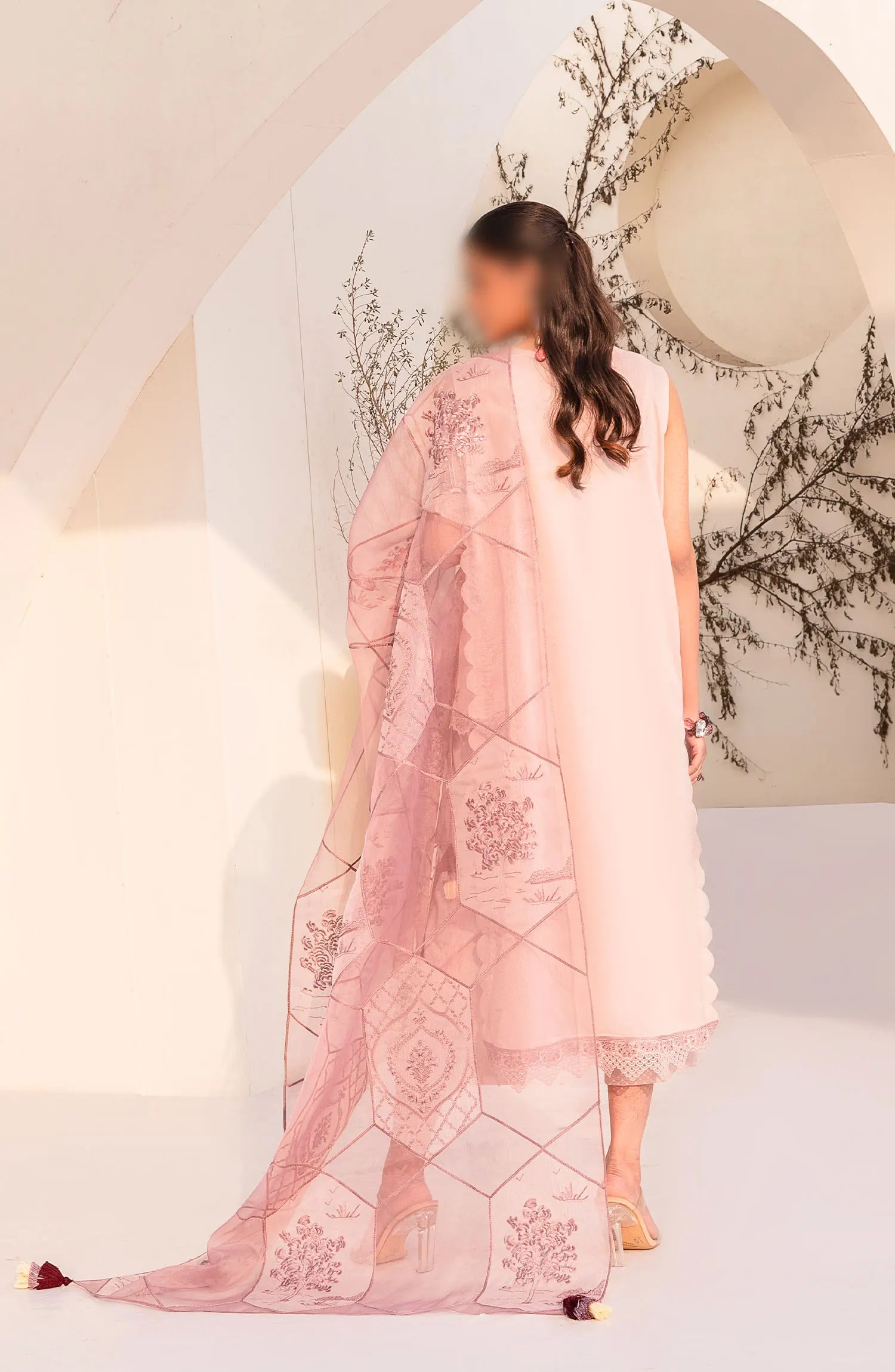AJR Garden Whisper Embroidered Silk Unstitched 3 Piece Suit - AJR-GW-03 AMORIA - AJR25GW - Light Pink - Luxury Collection