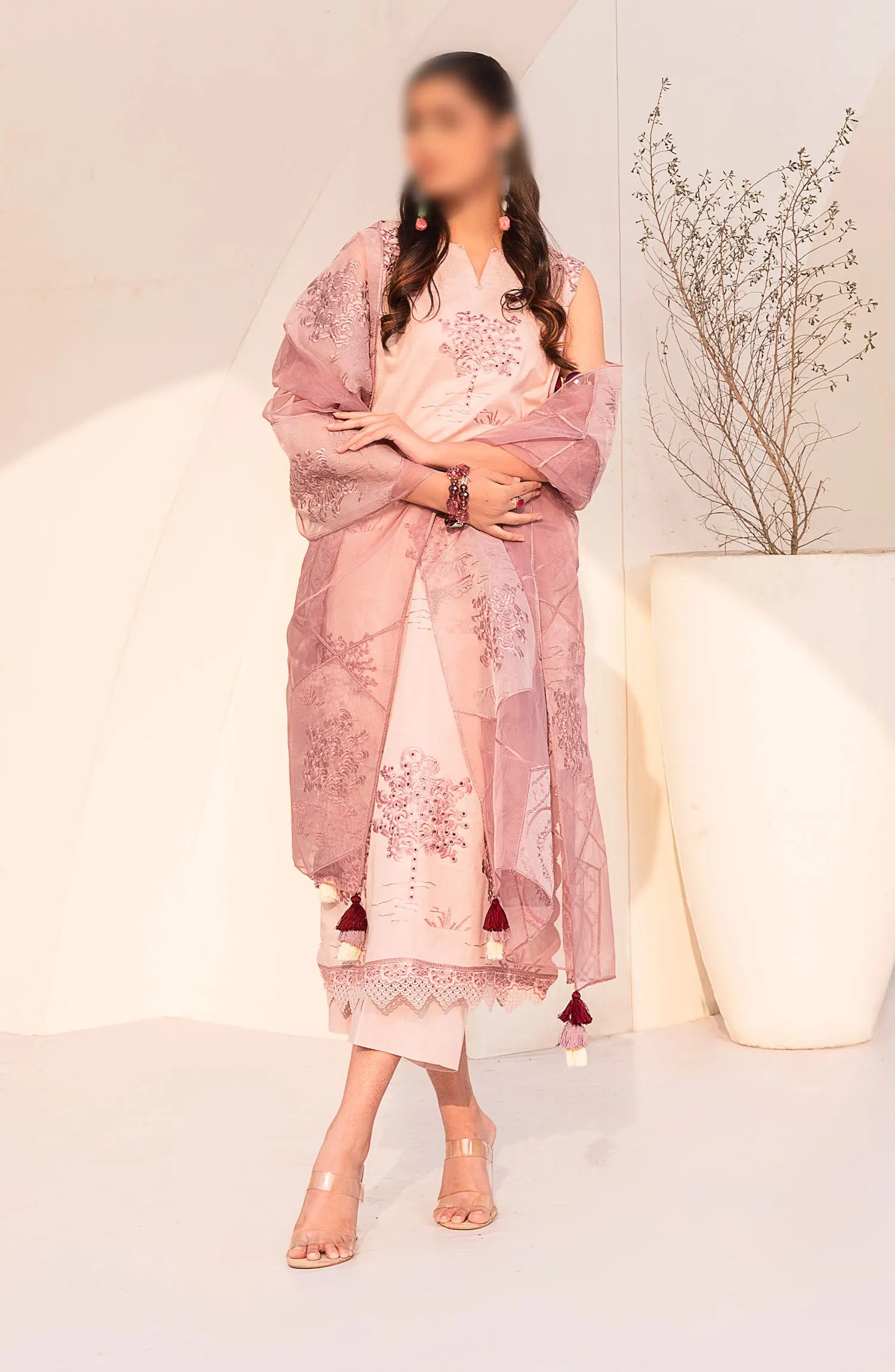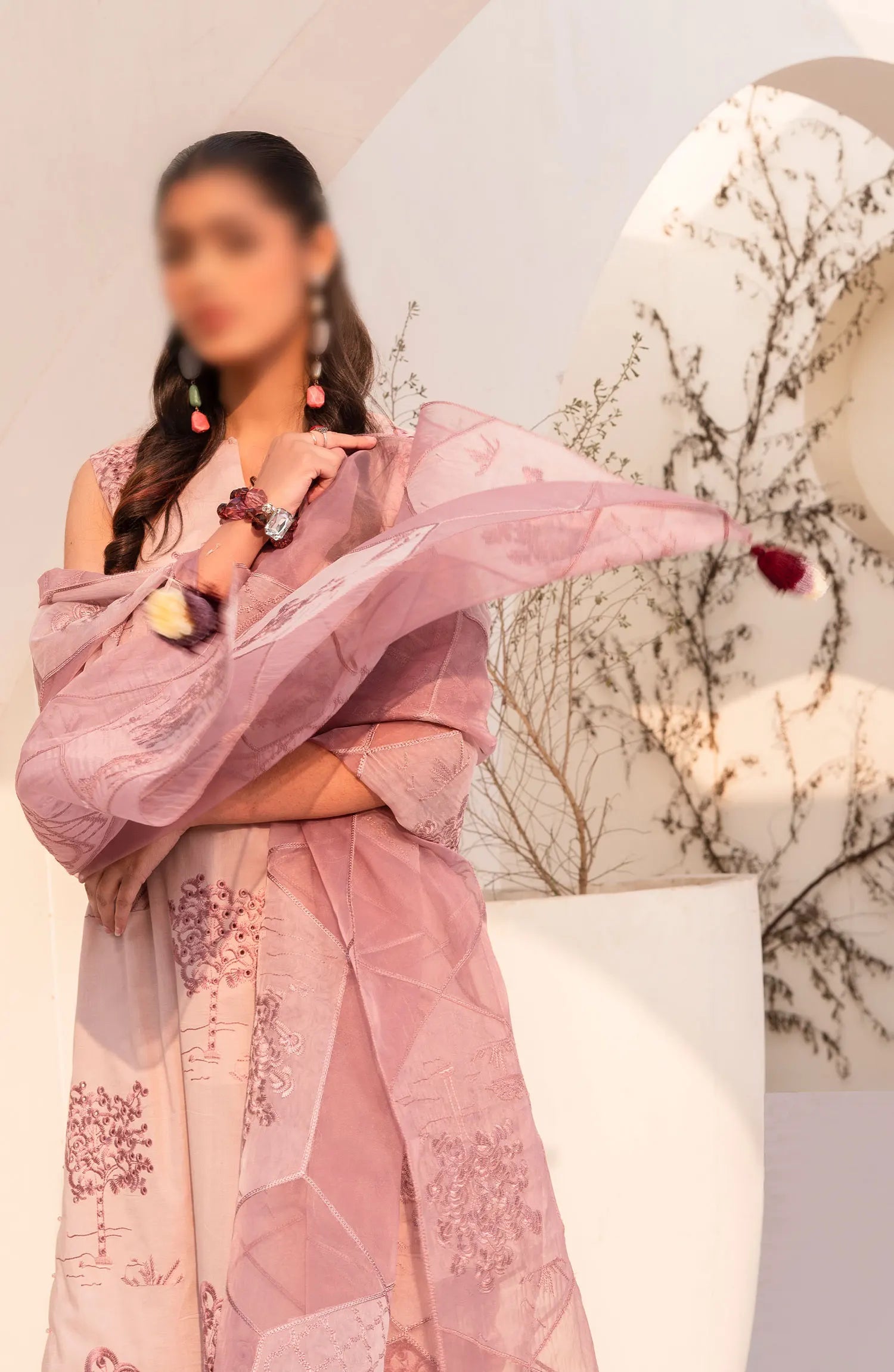 AJR Garden Whisper Embroidered Silk Unstitched 3 Piece Suit - AJR-GW-08 CEYLA - AJR25GW - Pink - Luxury Collection