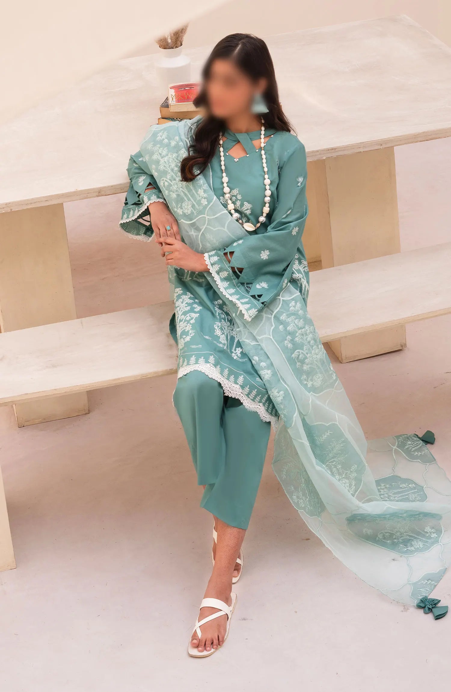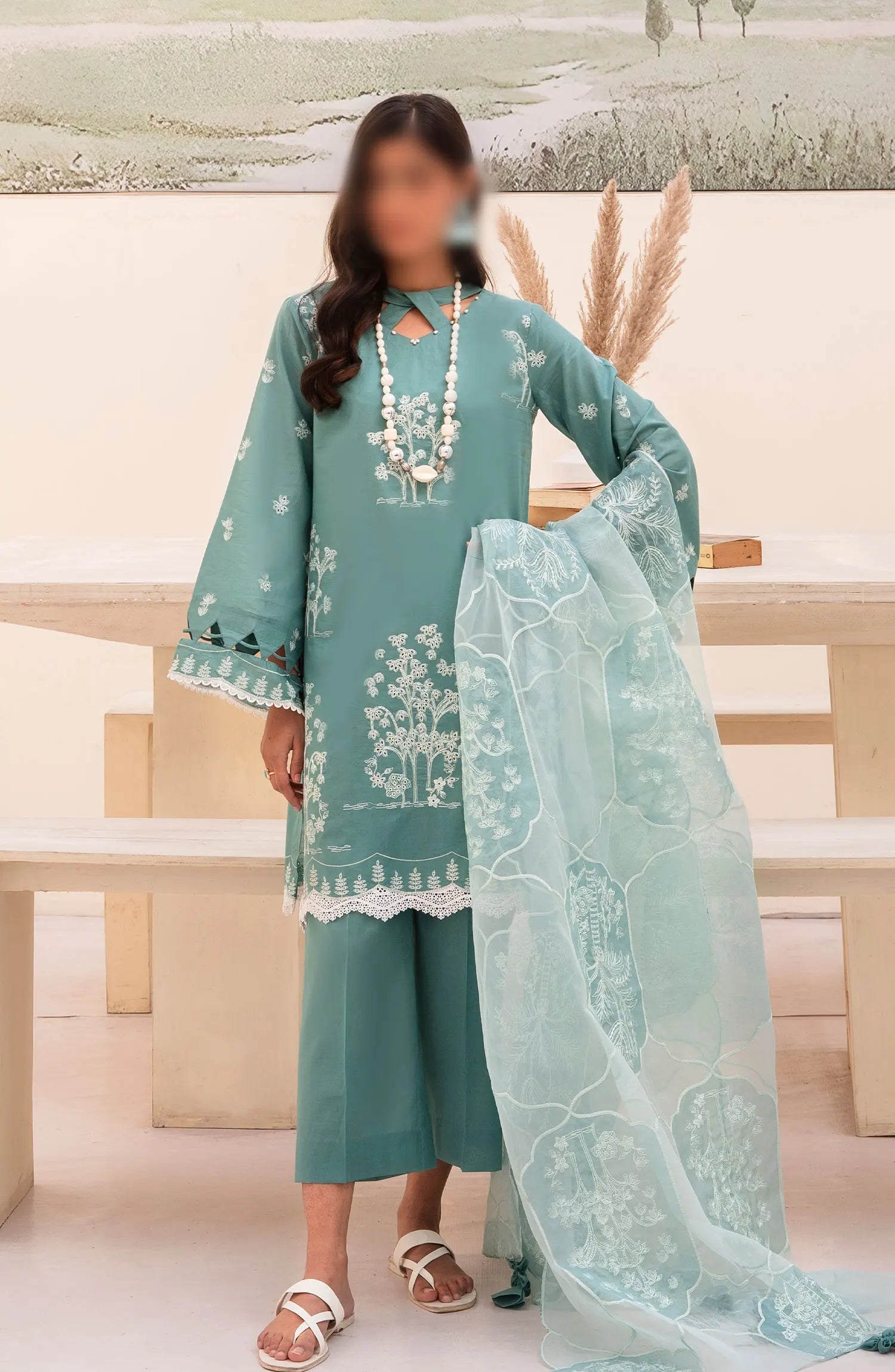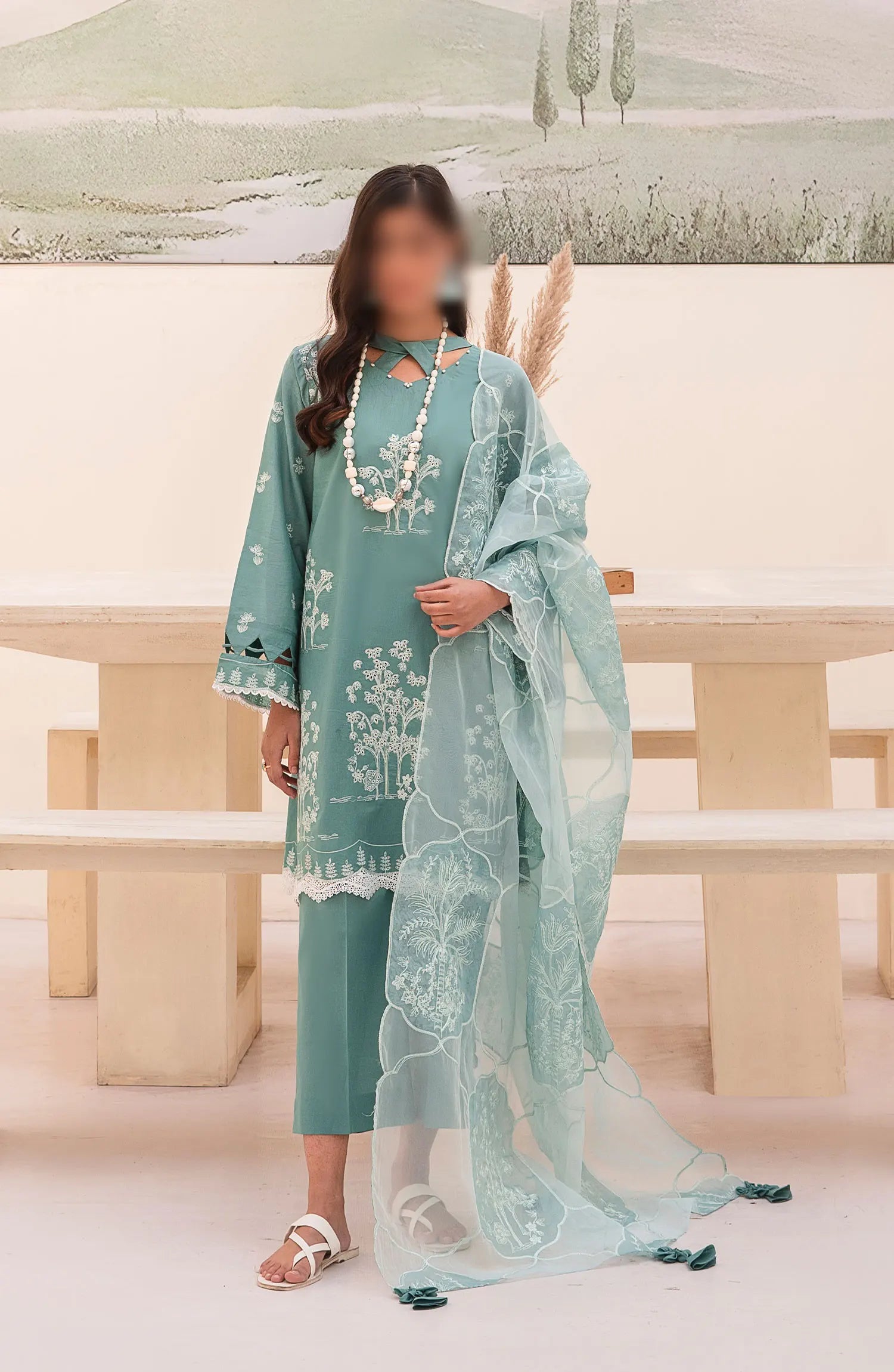 AJR Garden Whisper Embroidered Silk Unstitched 3 Piece Suit - AJR-GW-04 AURINA - AJR25GW - Sky Blue - Luxury Collection