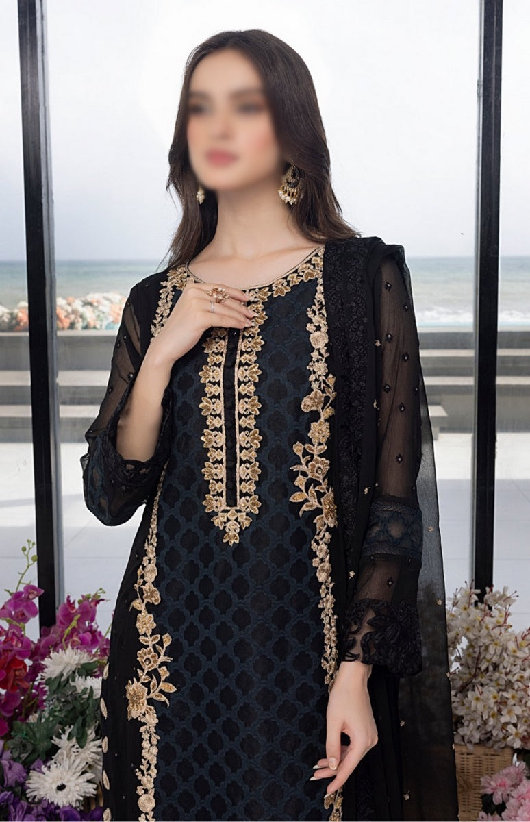 The standard style comes as a long-sleeved kameez with dupatta and trouser/shawlar.