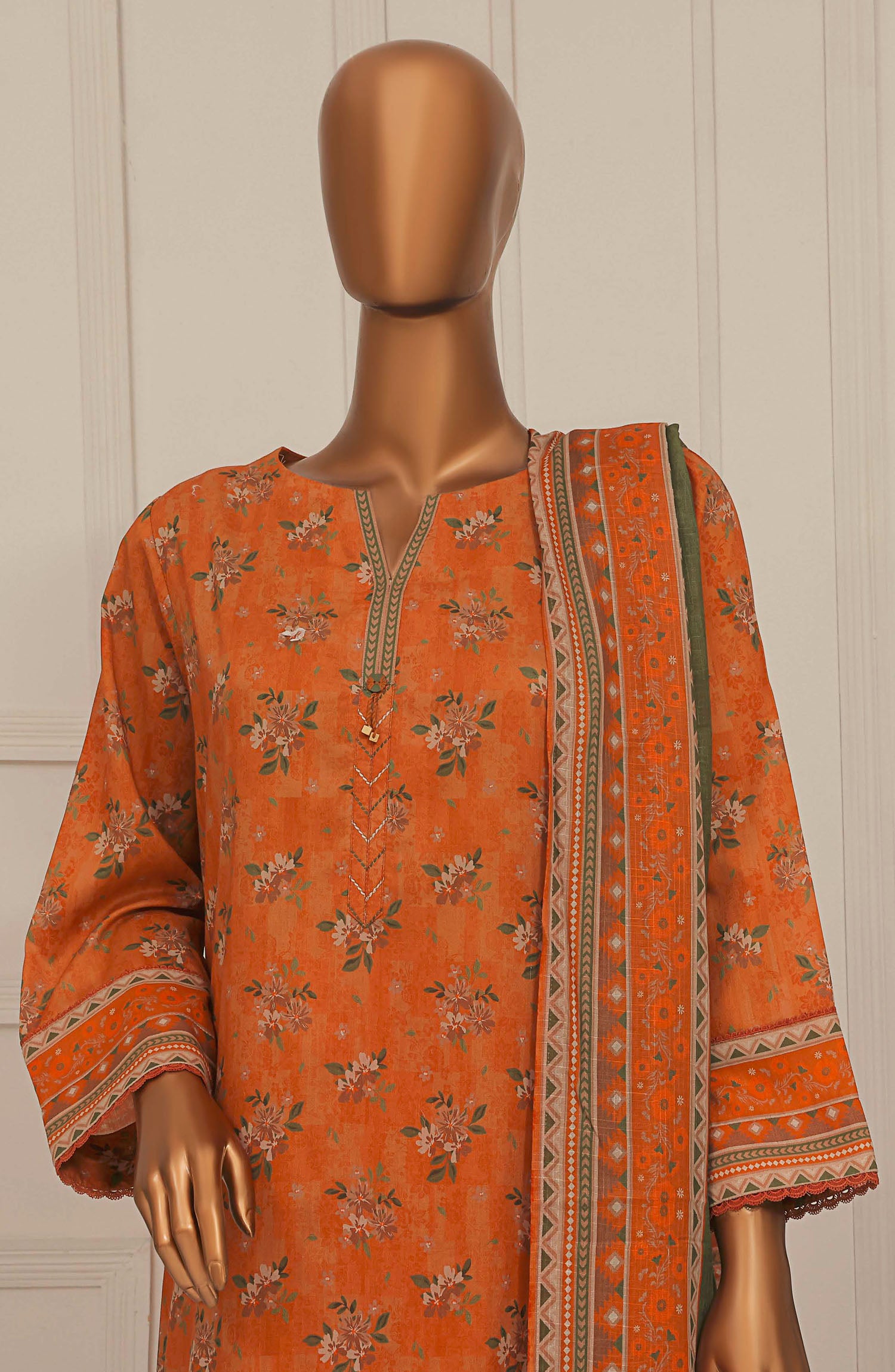 Home Asasa by HZ Textile Embroidered Lawn Unstitched 3 Piece Suit - AEL-254 - HZ25ASSL - Orange - Summer Collection