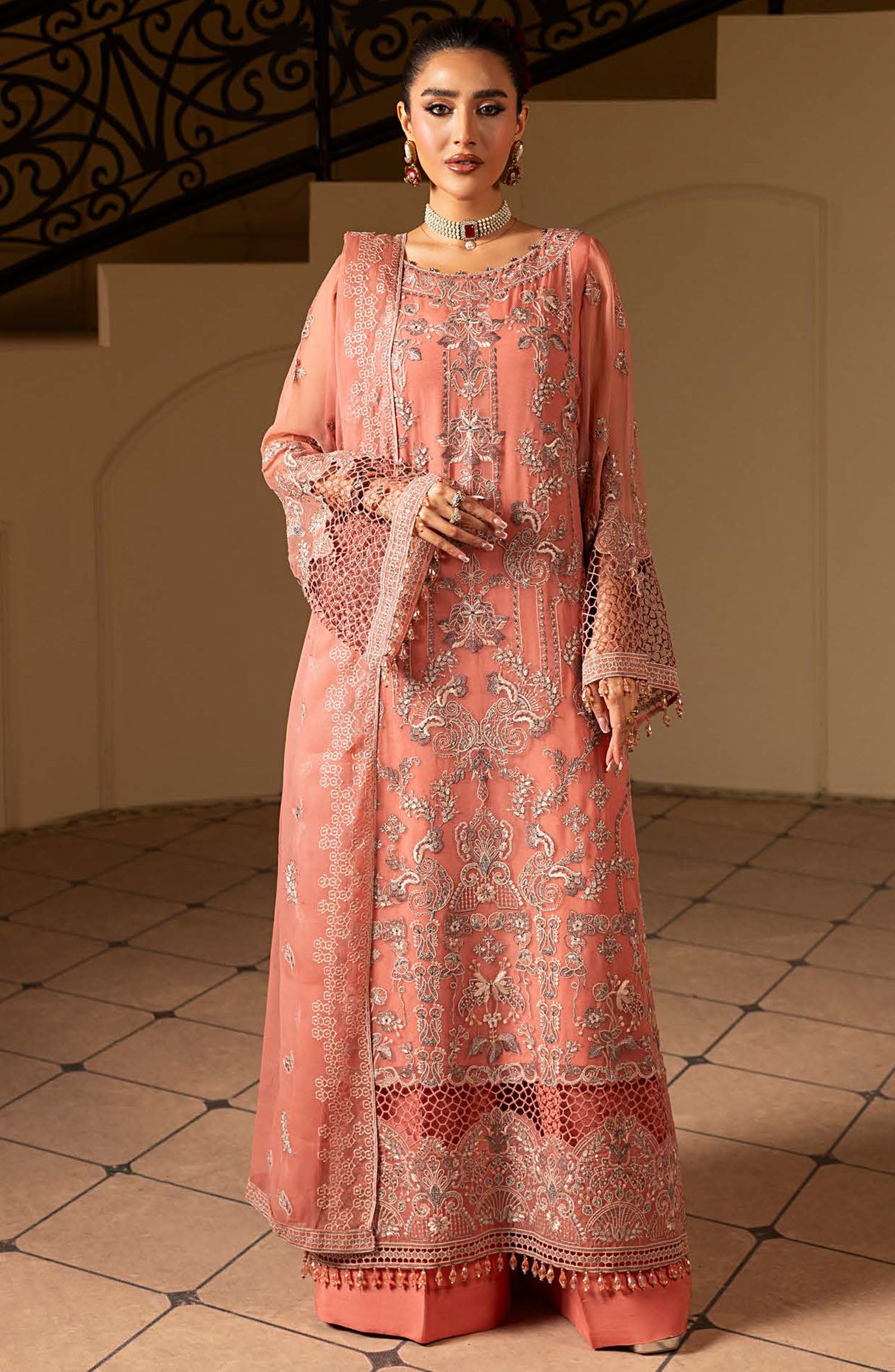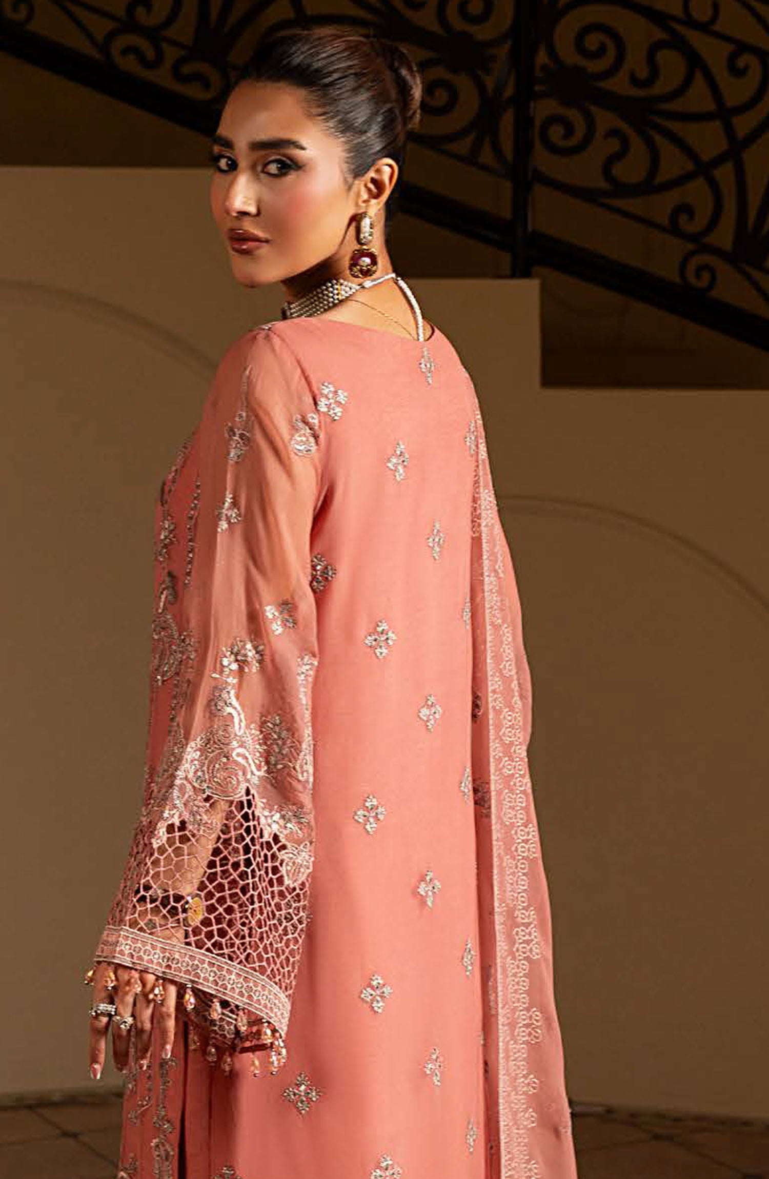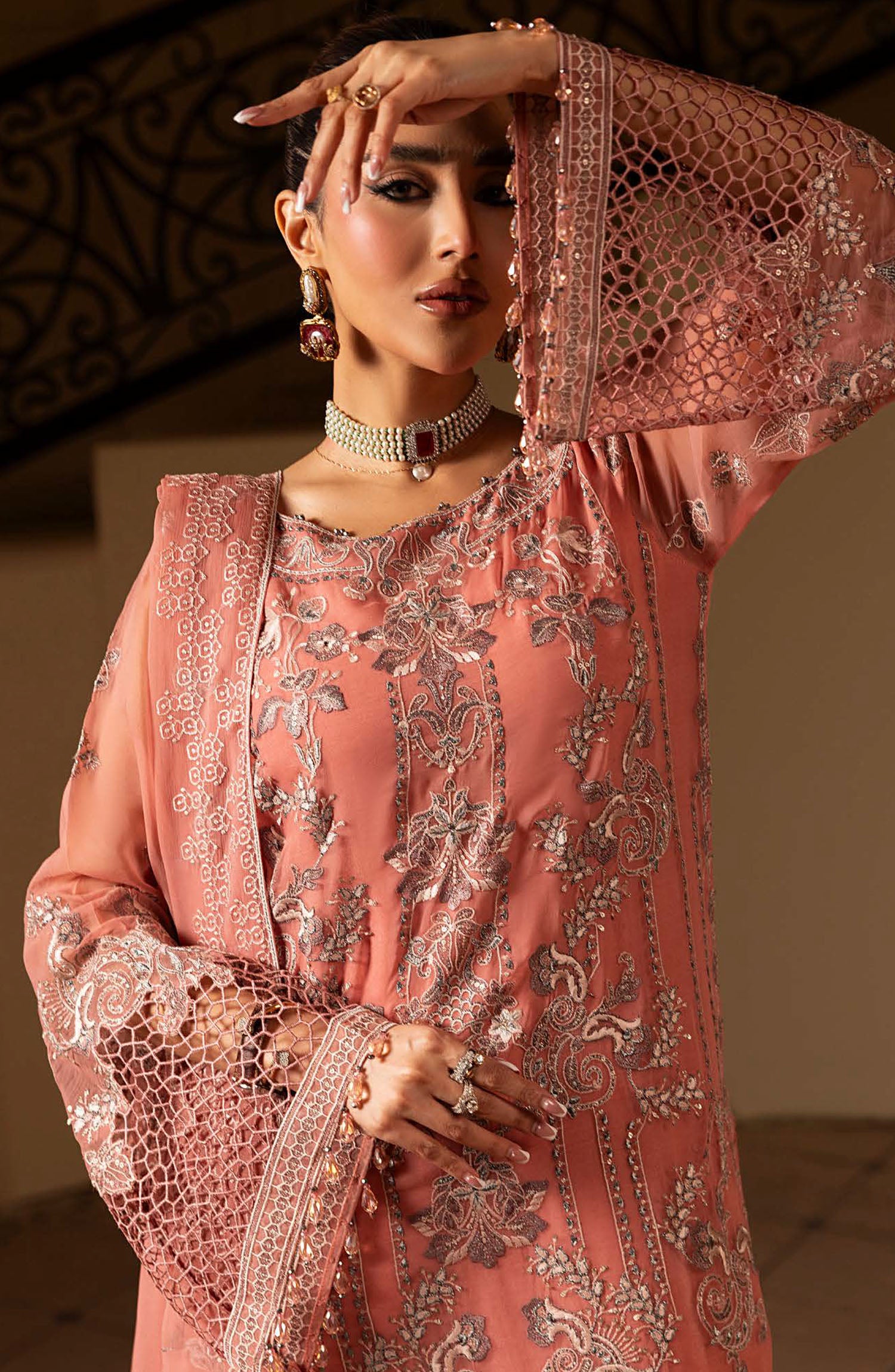 Ashnai by Lavish Premium Embroidered Chiffon Unstitched 3 Piece Suit - ASH-06 Peach Mirage - LVP25ASH - Pink - Festive Collection