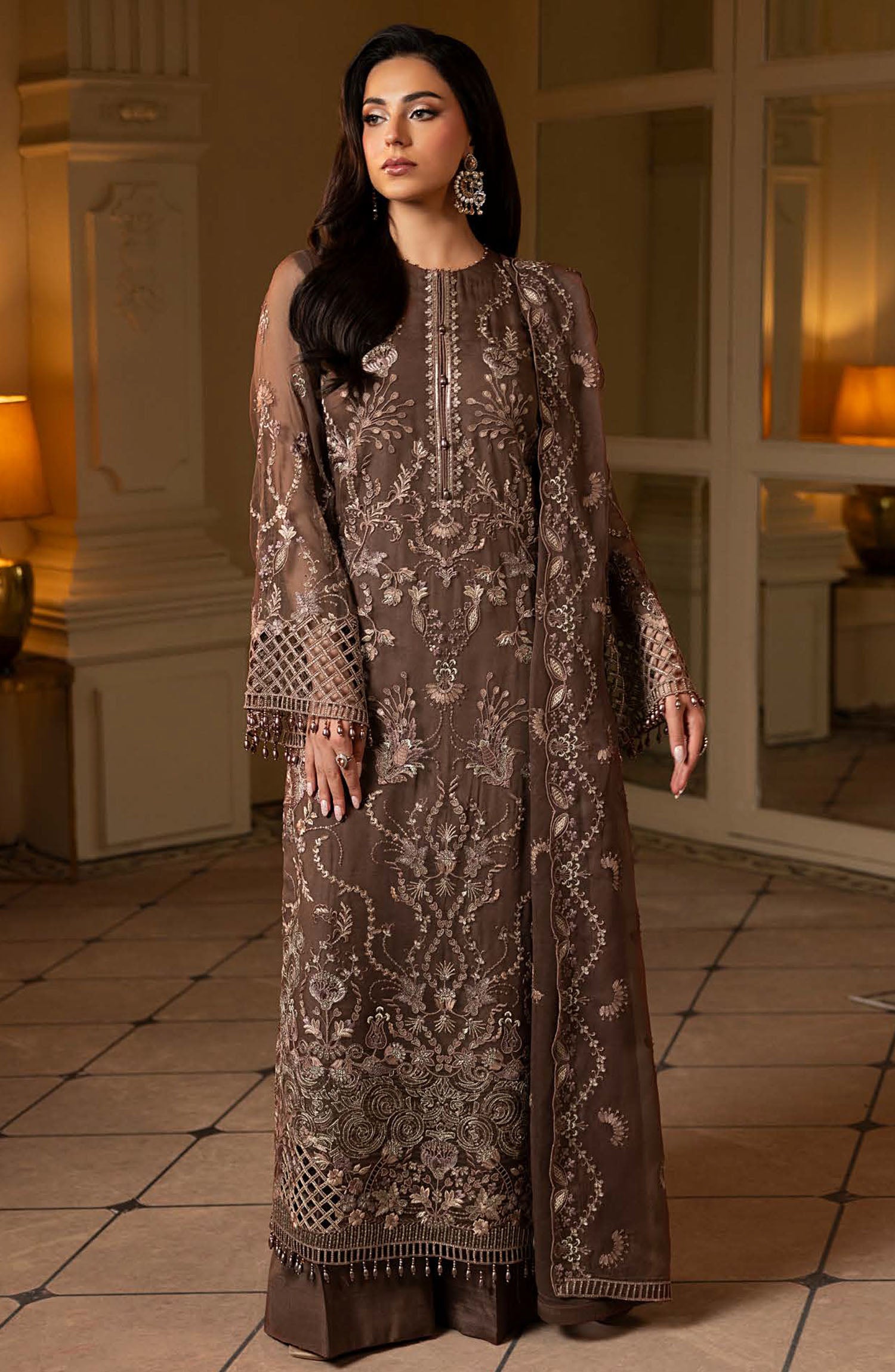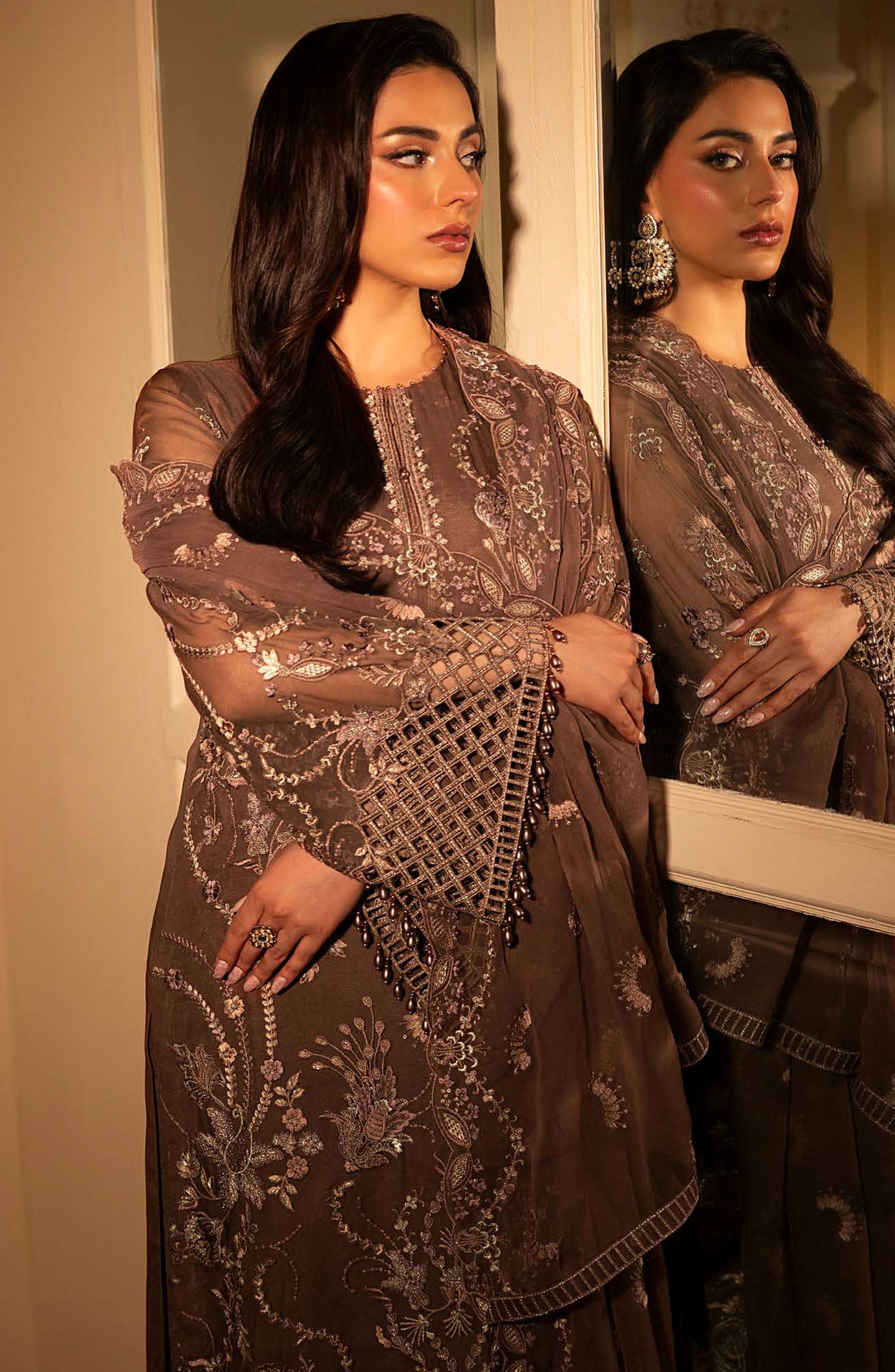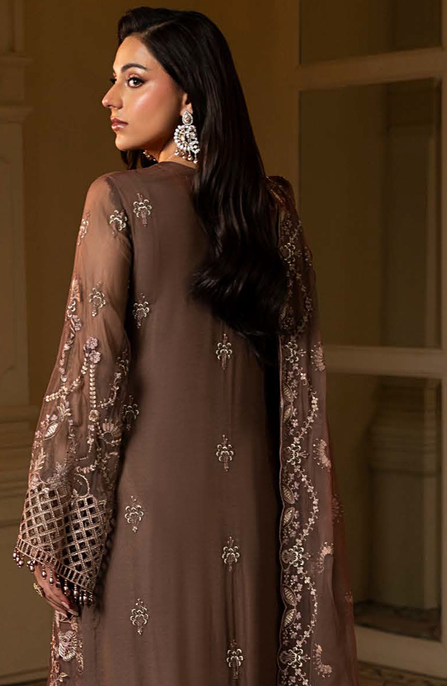 Ashnai by Lavish Premium Embroidered Chiffon Unstitched 3 Piece Suit - ASH-08 Mocha Bloom - LVP25ASH - Brown - Festive Collection