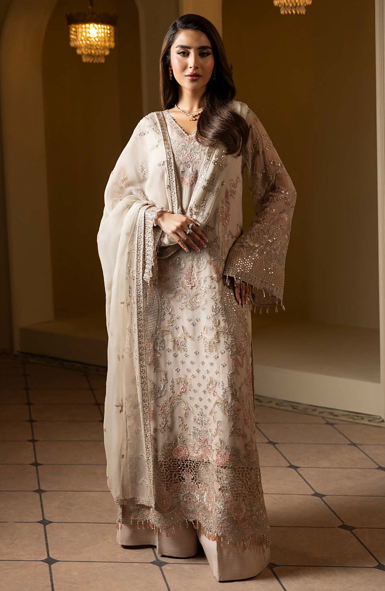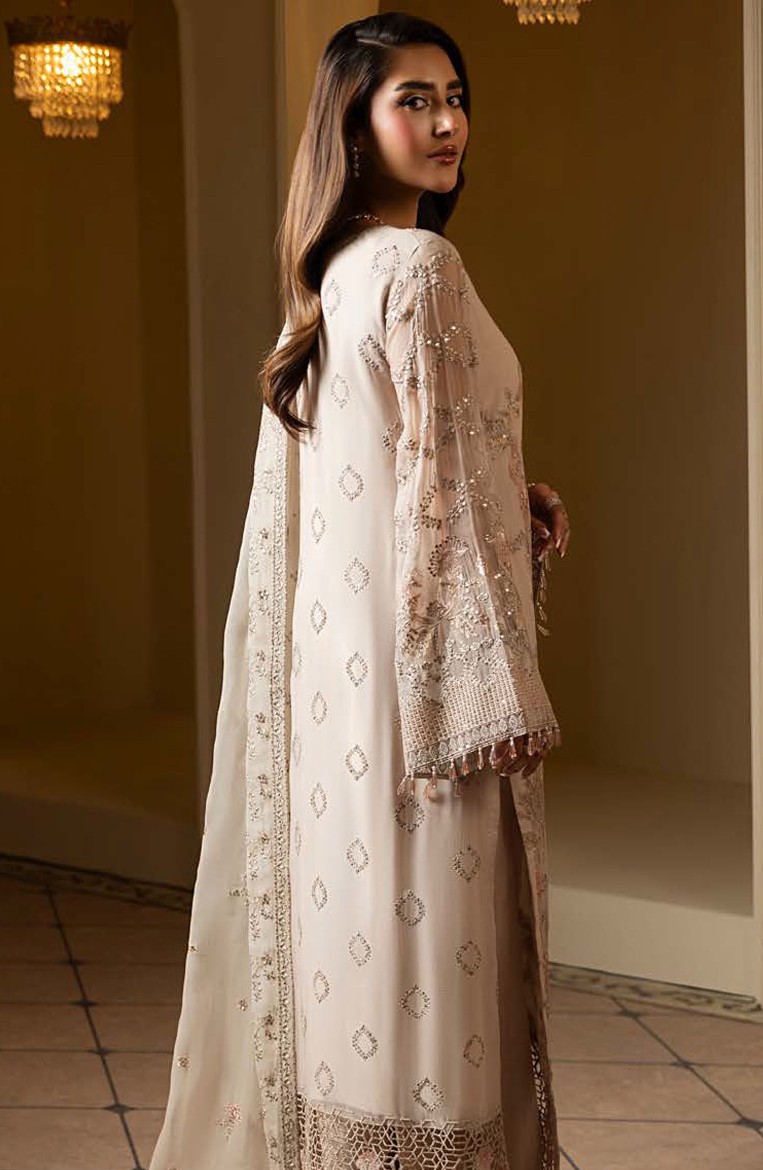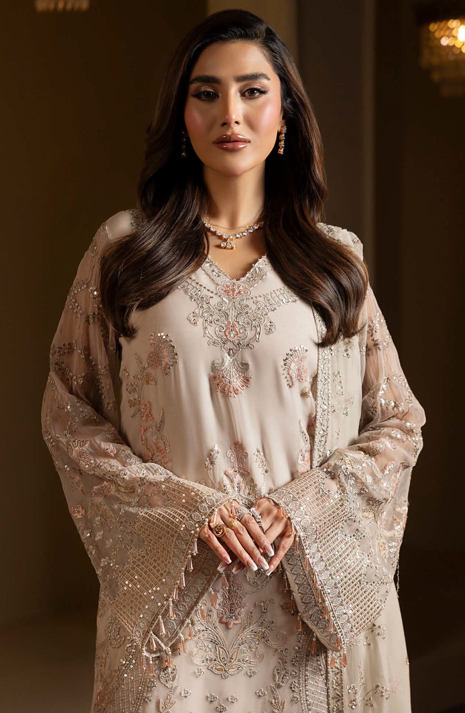 Ashnai by Lavish Premium Embroidered Chiffon Unstitched 3 Piece Suit - ASH-09 Snowfall Dreams - LVP25ASH - Beige - Festive Collection