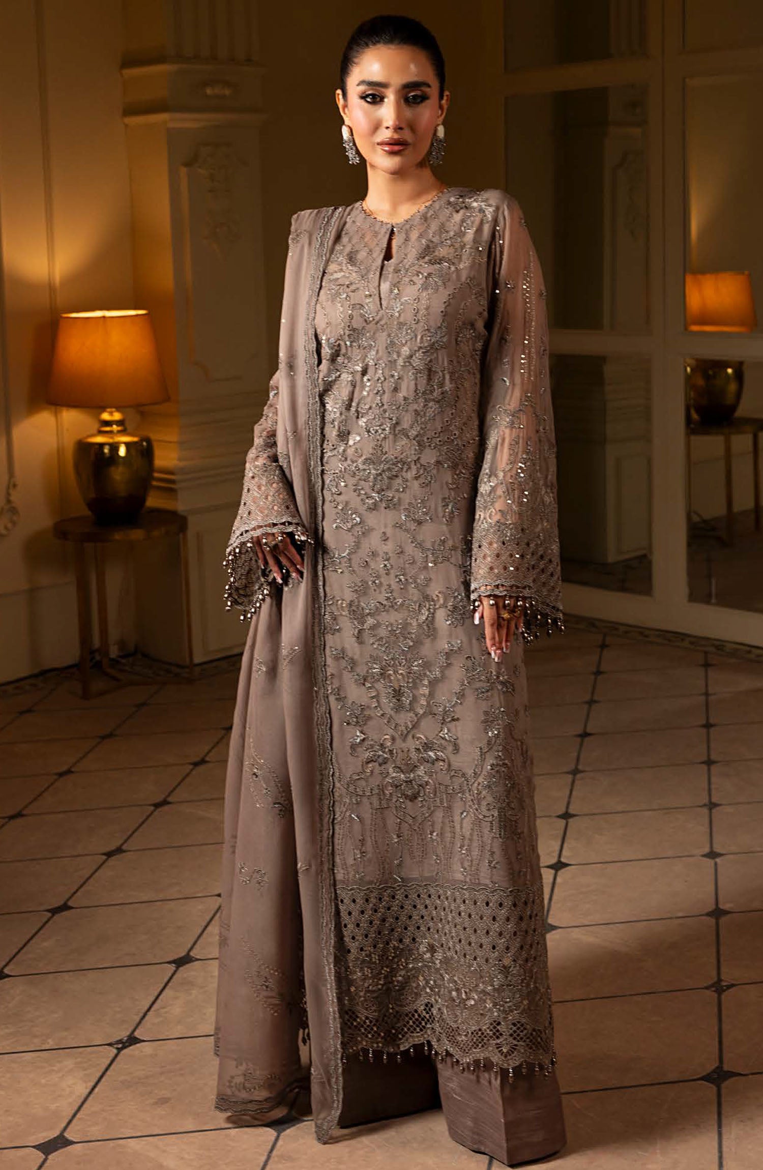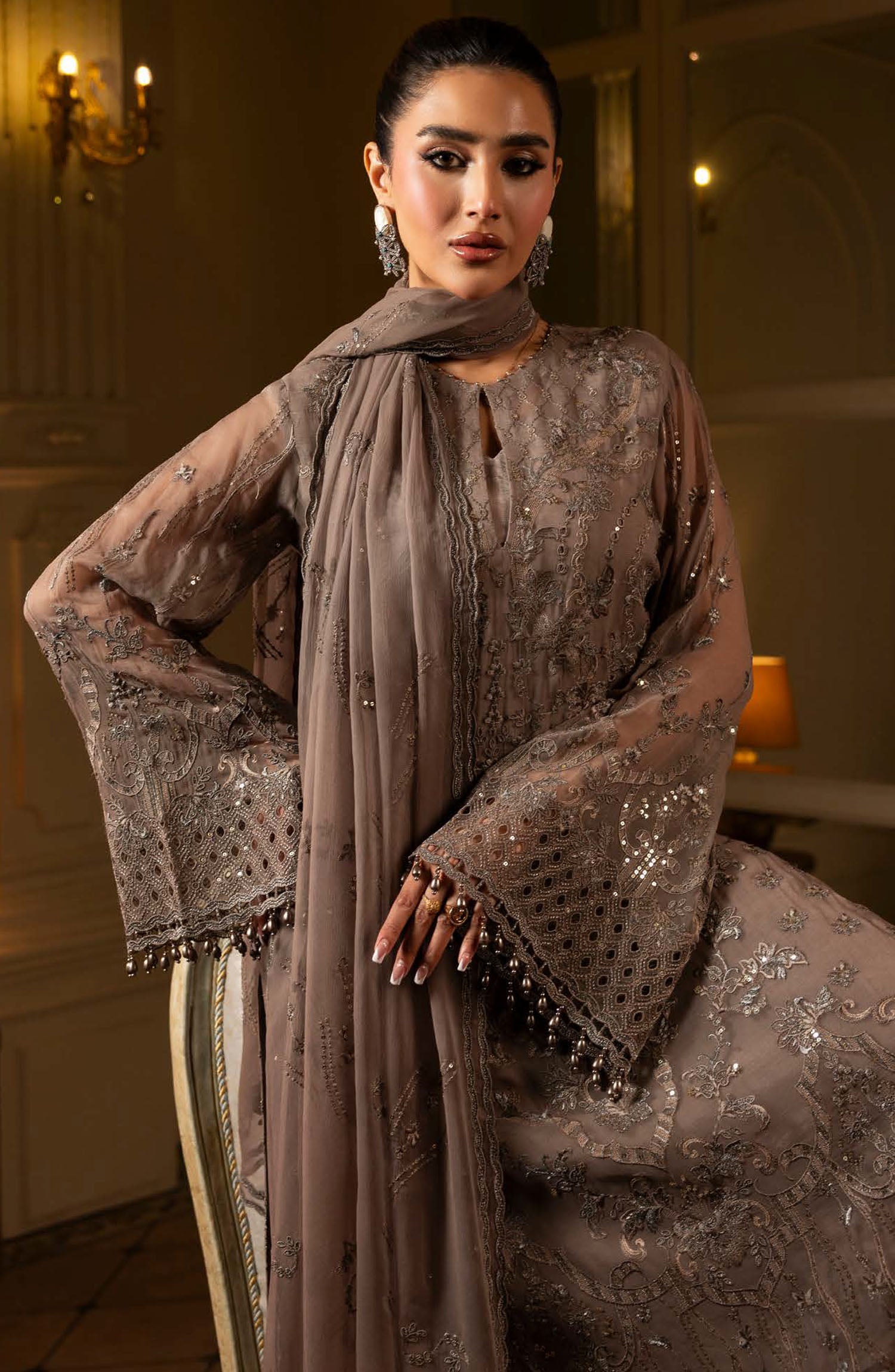 Ashnai by Lavish Premium Embroidered Chiffon Unstitched 3 Piece Suit - ASH-10 Rustic Grace - LVP25ASH - Grey - Festive Collection