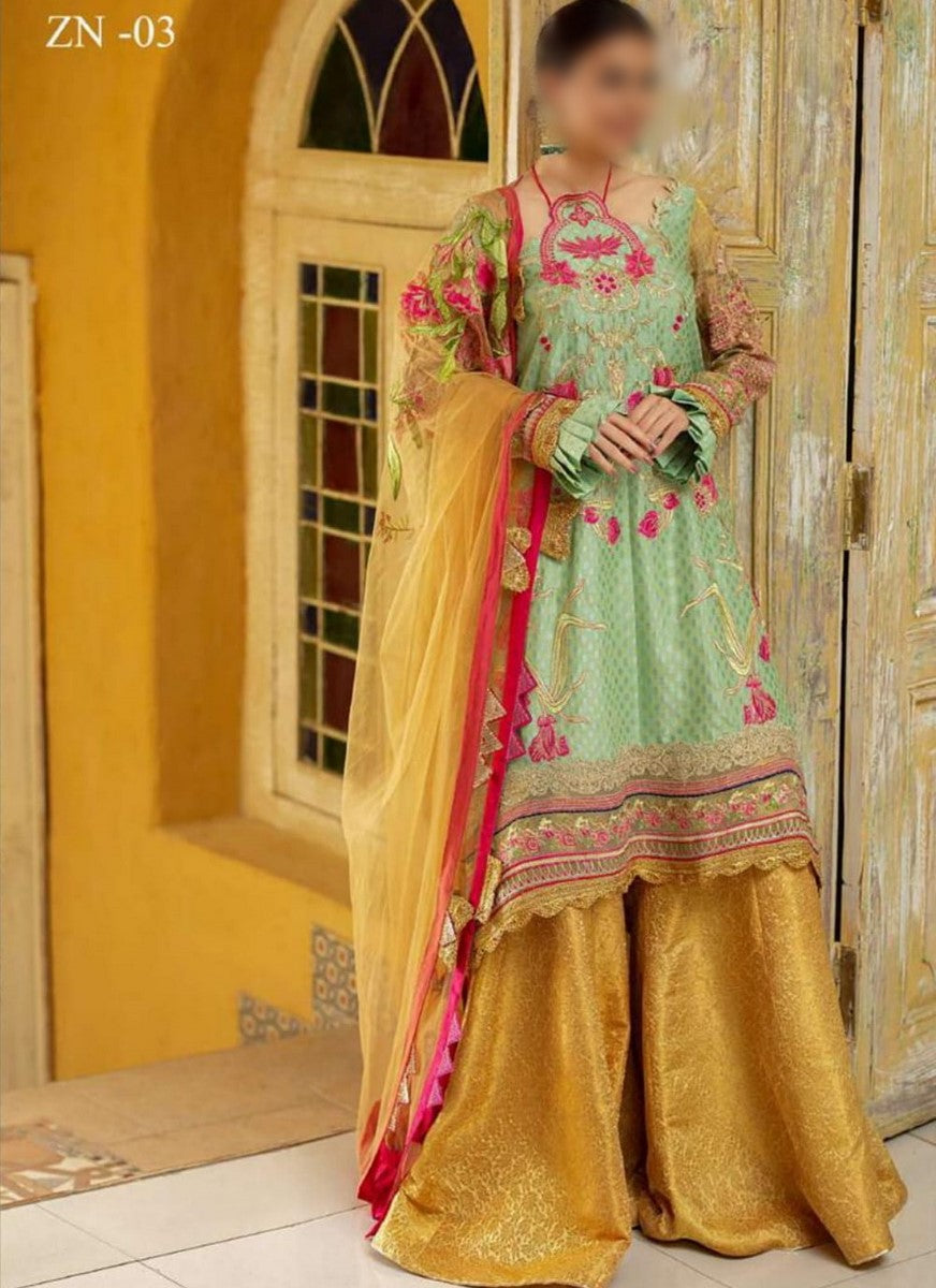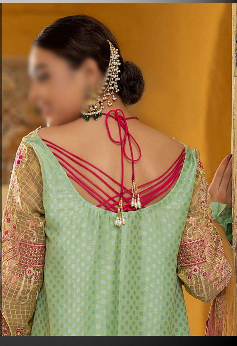 Fully Embroidered tilla front on masoori jacquard 1.25 yards.