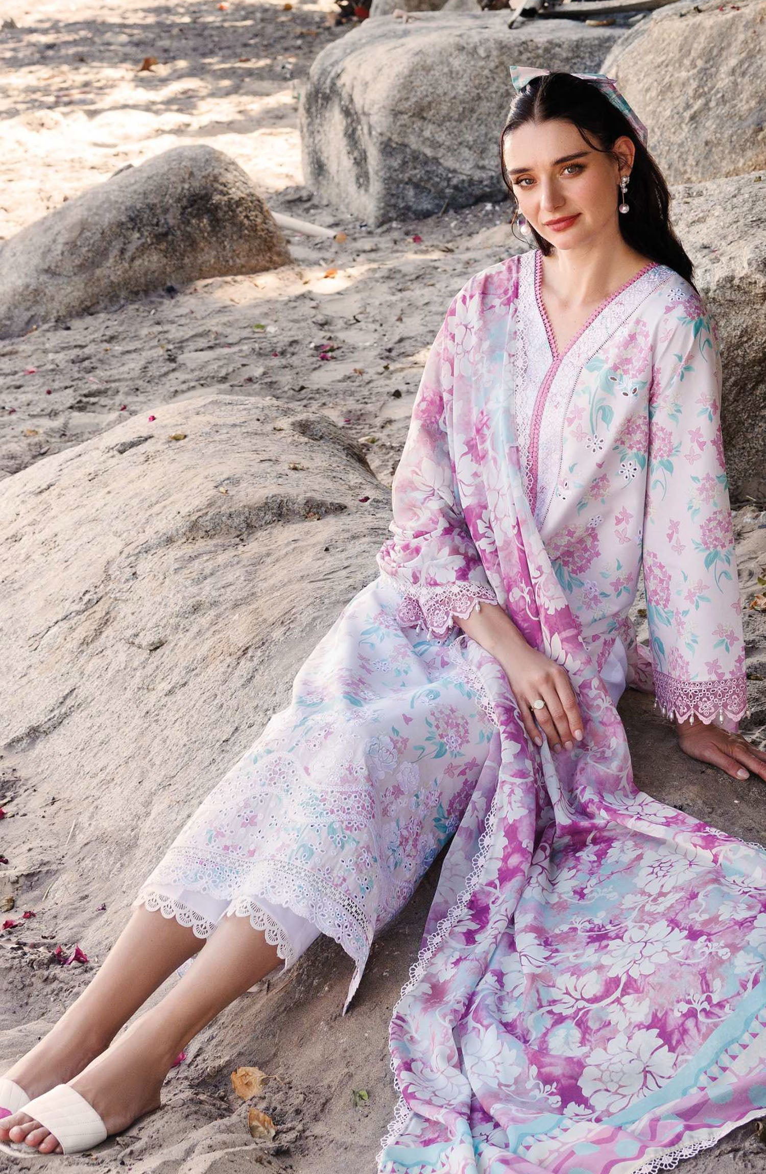 Aurea by Farasha Embroidered Lawn Unstitched 3 Piece Suit - D-02 Blossom Mist - FSH25AEL - White - Summer Collection