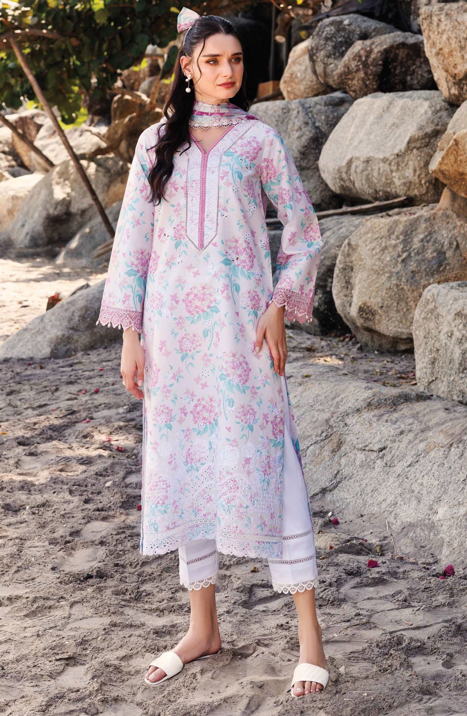 Home Aurea by Farasha Embroidered Lawn Unstitched 3 Piece Suit - D-02 Blossom Mist - FSH25AEL - White - Summer Collection