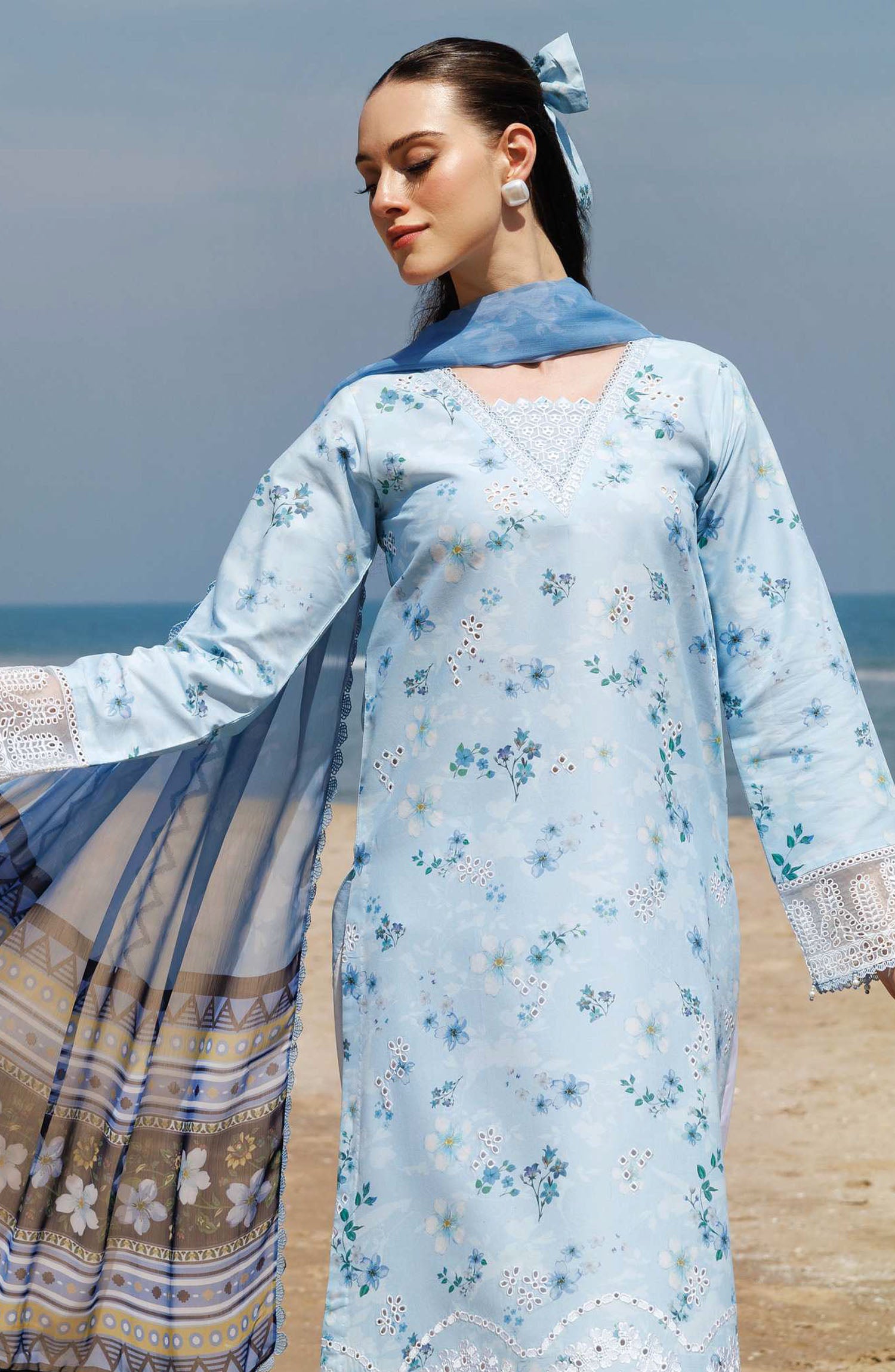 Aurea by Farasha Embroidered Lawn Unstitched 3 Piece Suit - D-04 Moonlit Pine - FSH25AEL - Blue - Summer Collection
