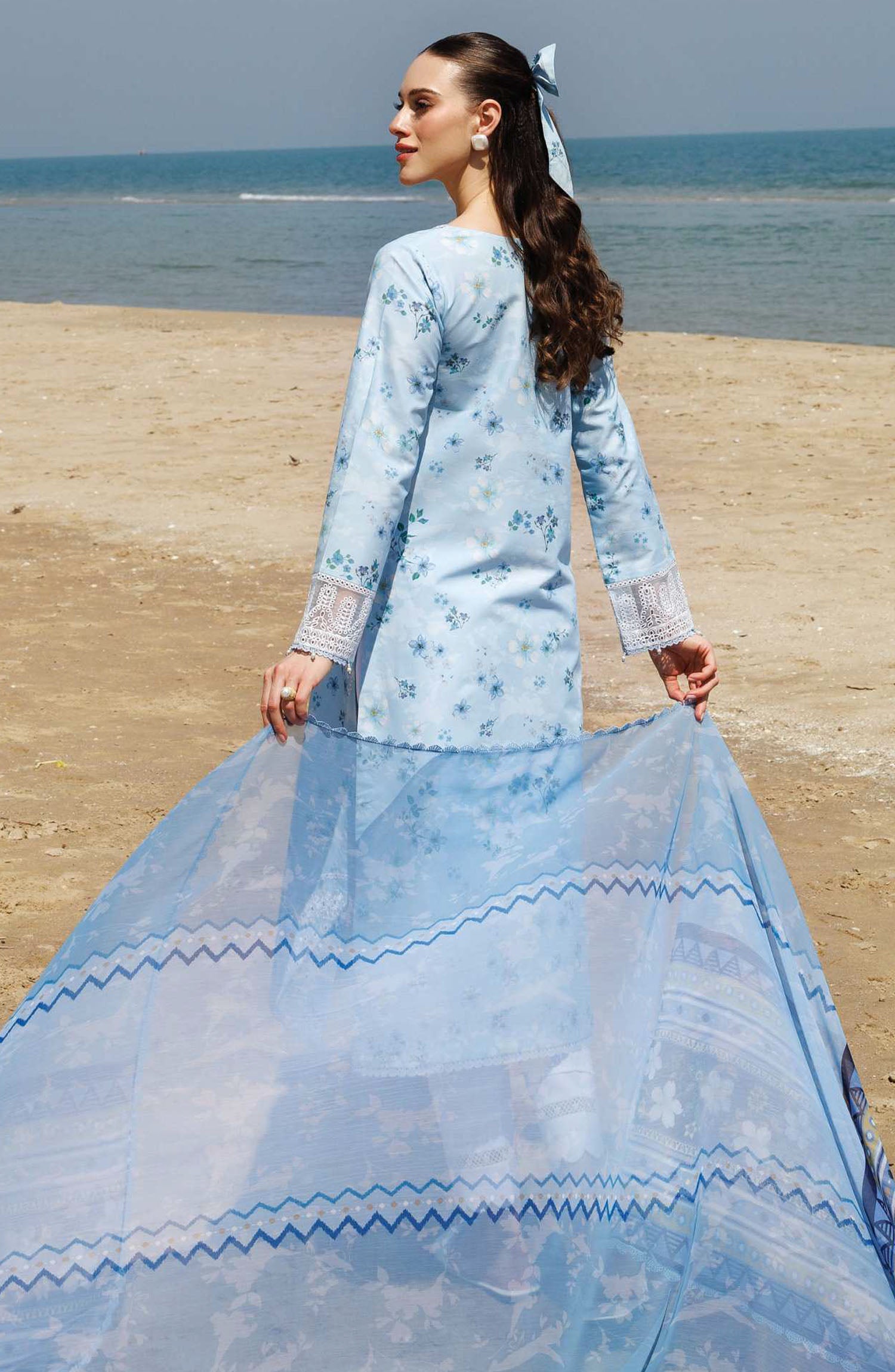 Home Aurea by Farasha Embroidered Lawn Unstitched 3 Piece Suit - D-04 Moonlit Pine - FSH25AEL - Blue - Summer Collection