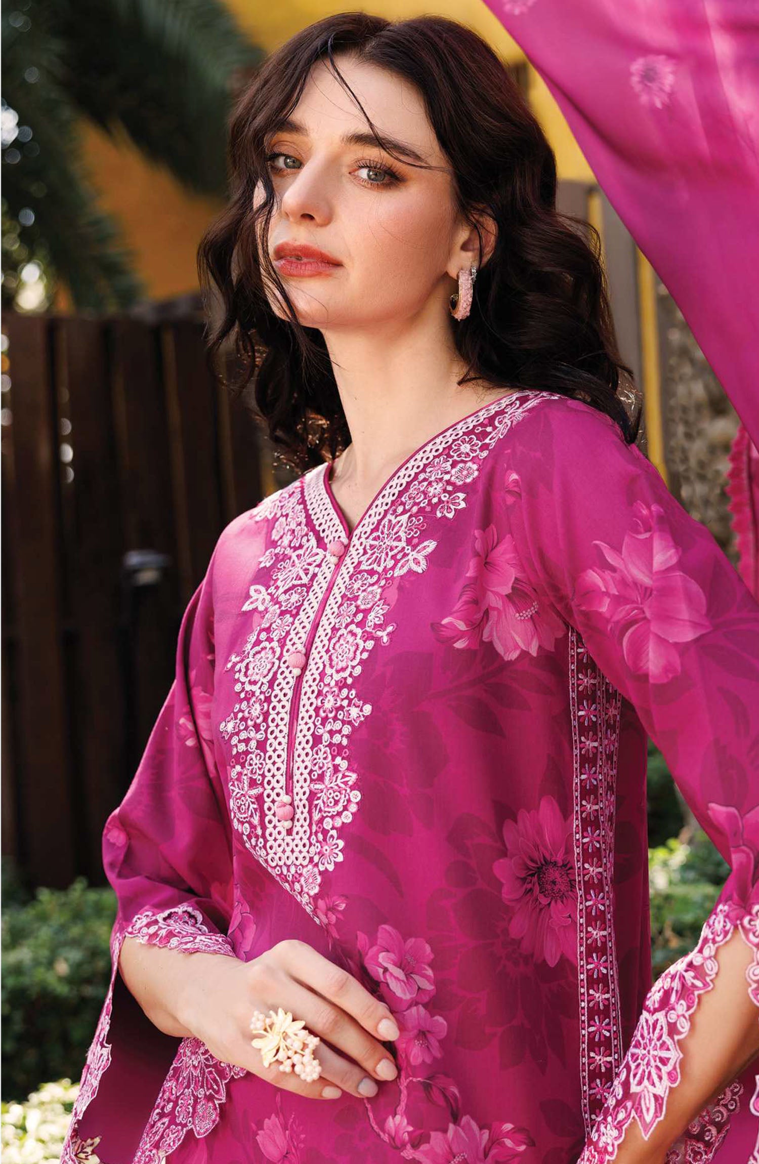 Aurea by Farasha Embroidered Lawn Unstitched 3 Piece Suit - D-07 Fuchia Flare - FSH25AEL - Purple - Summer Collection