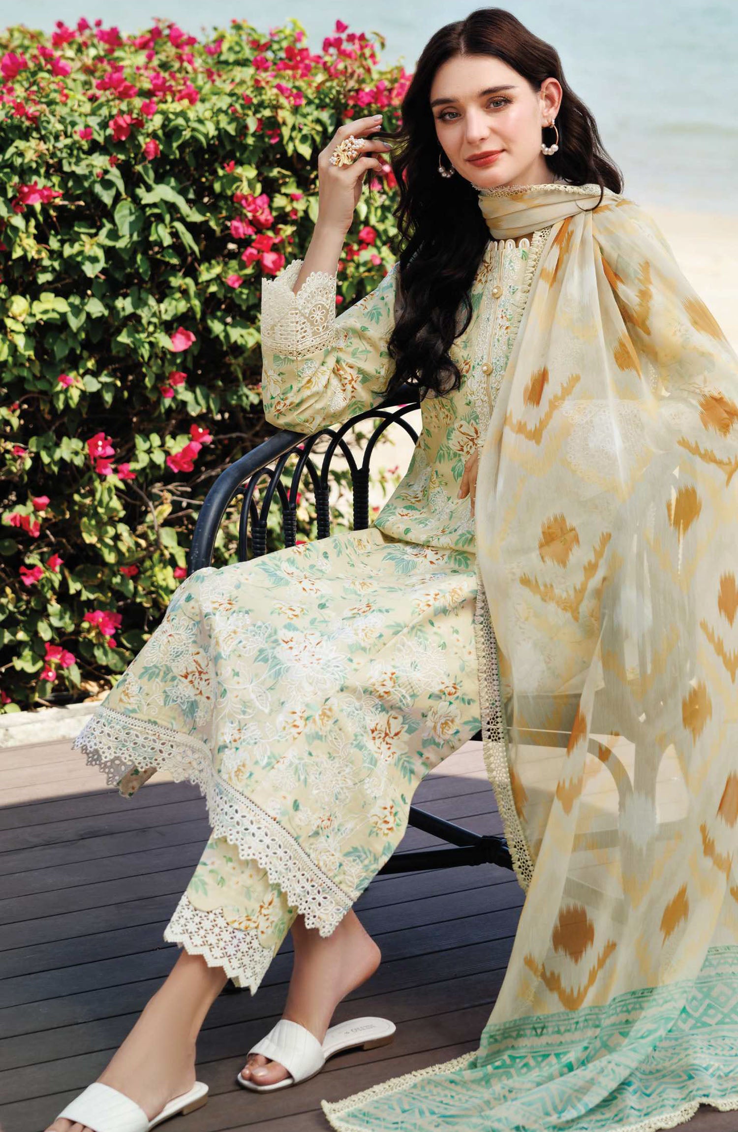 Aurea by Farasha Embroidered Lawn Unstitched 3 Piece Suit - D-08 Lush Cream - FSH25AEL - Yellow - Summer Collection
