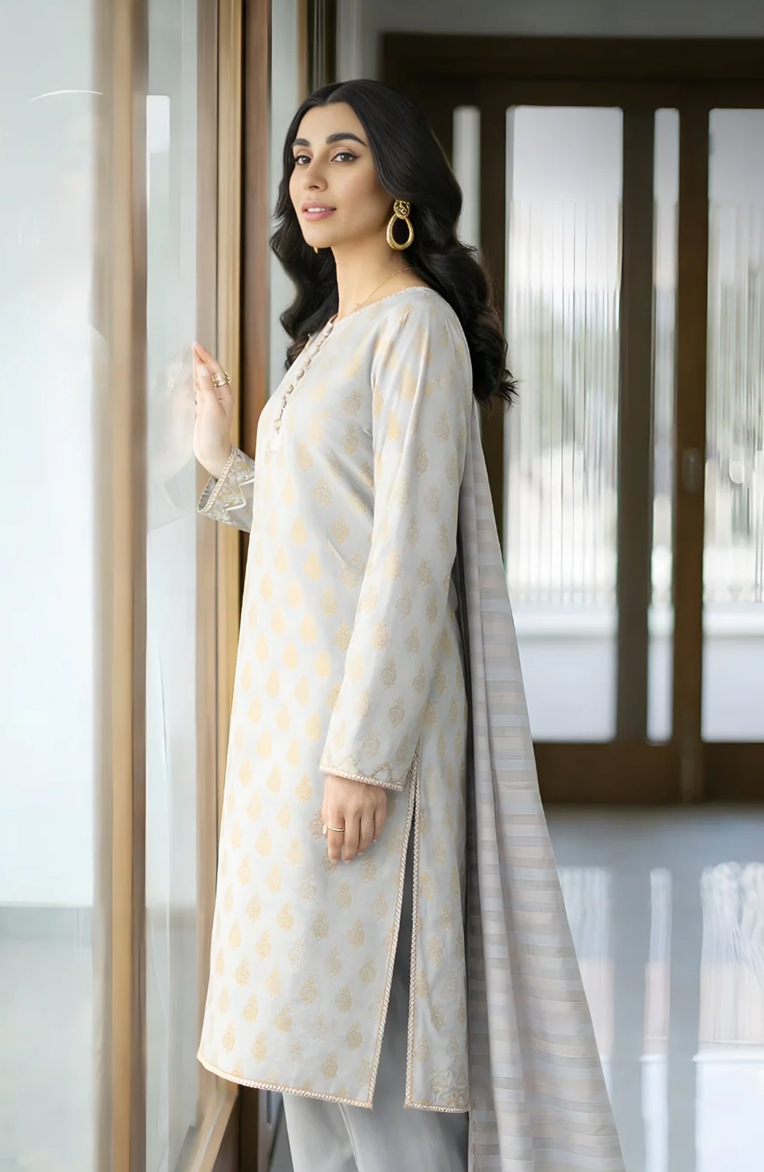 Exquisite Dupatta: Includes a Self Jacquard / Striped Woven dupatta that adds a layer of timeless elegance.