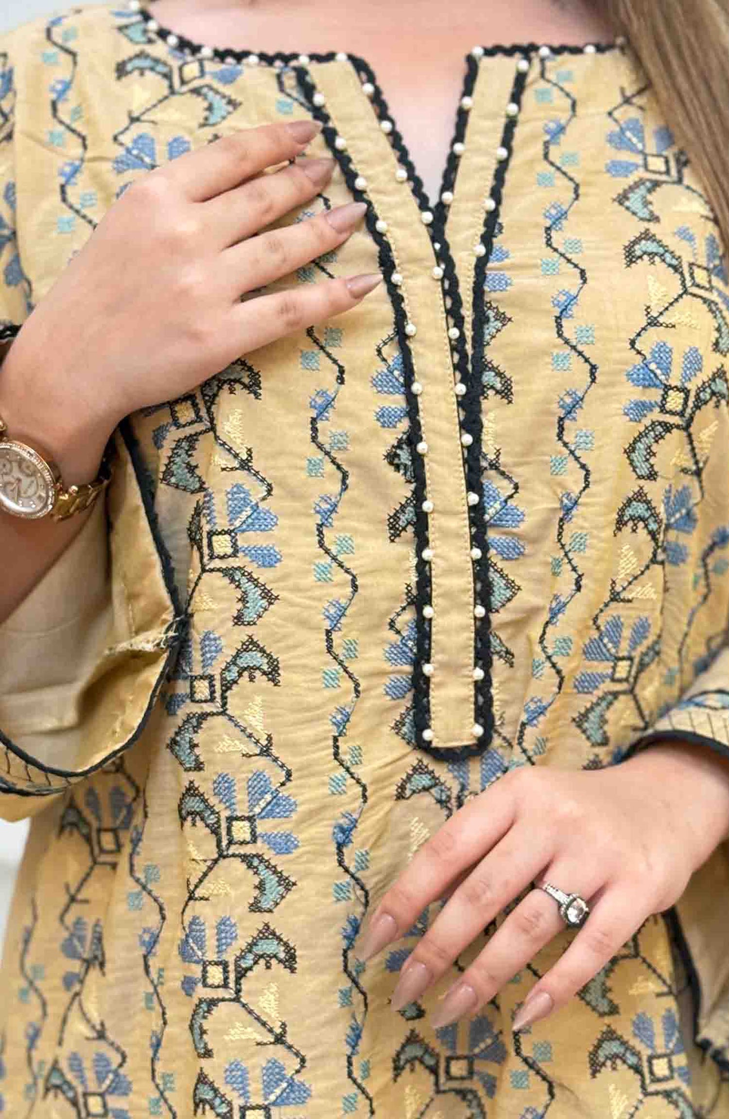 - Embroidered cuffs