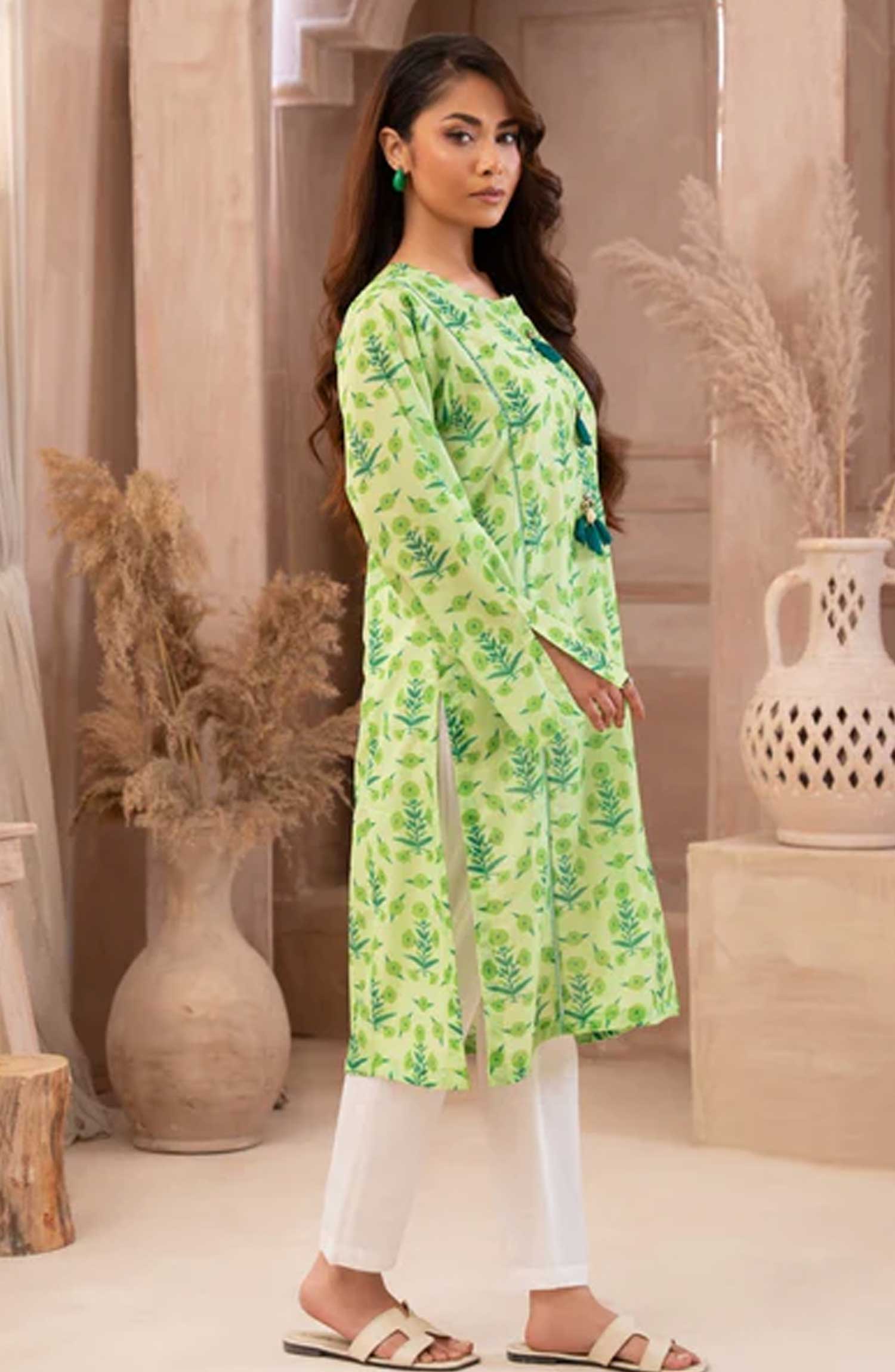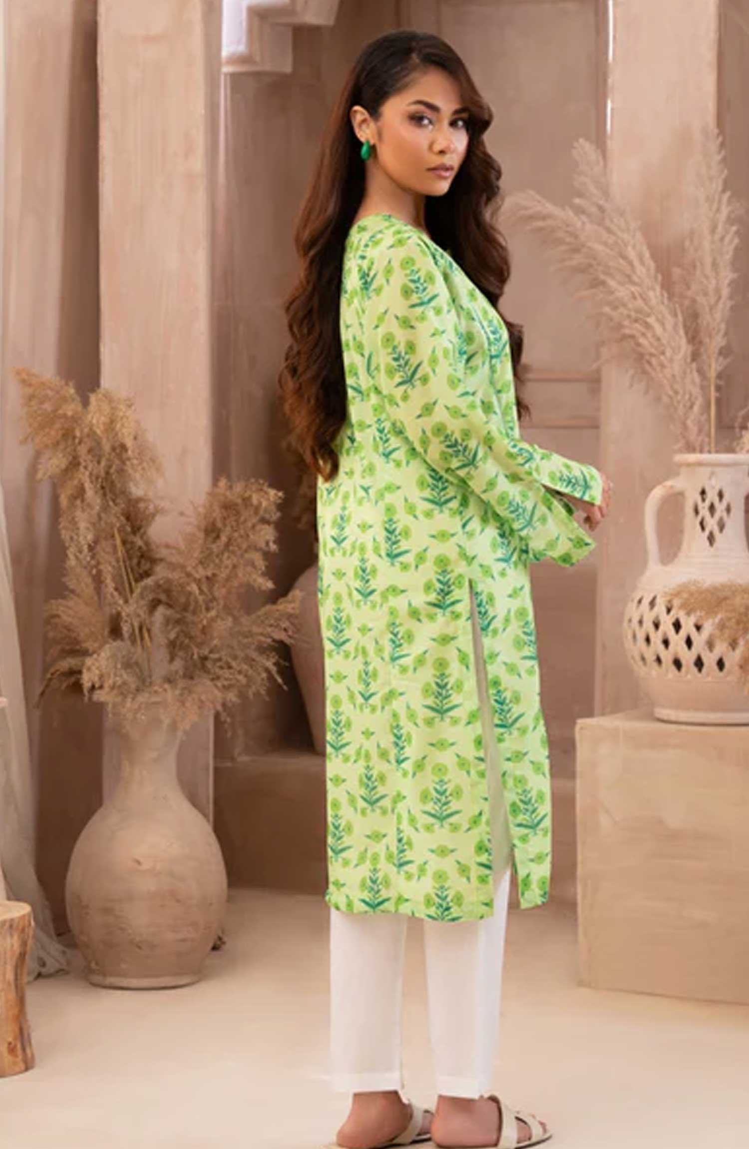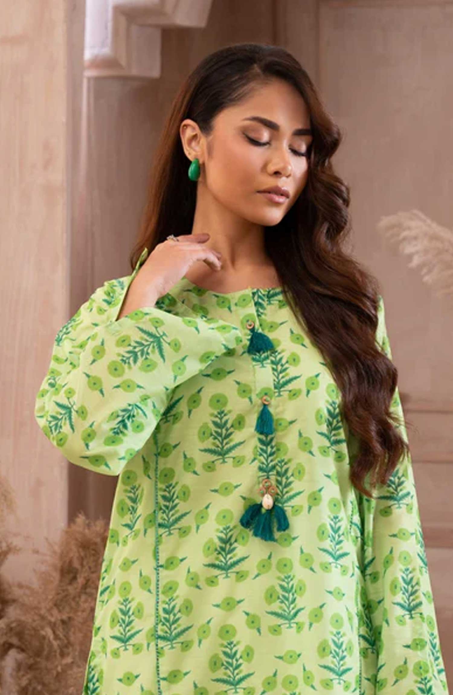 Green Cluster this elegant printed suit is perfect for the pleasant season coming ahead. Digital printed lawn shirt featuring a round neck with stylish buttons, straight hemline and straight sleeves. These are paired with a plain trouser.