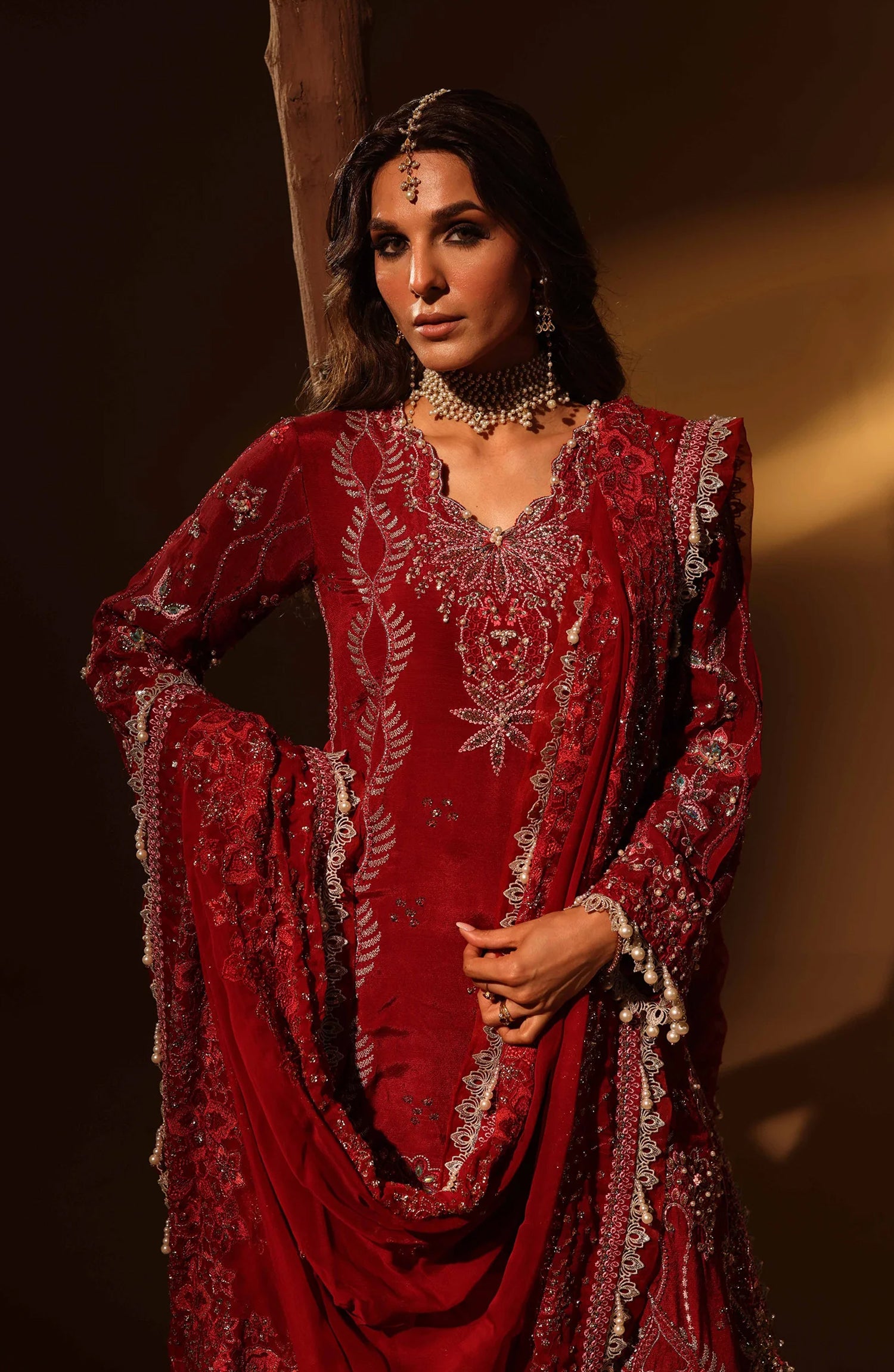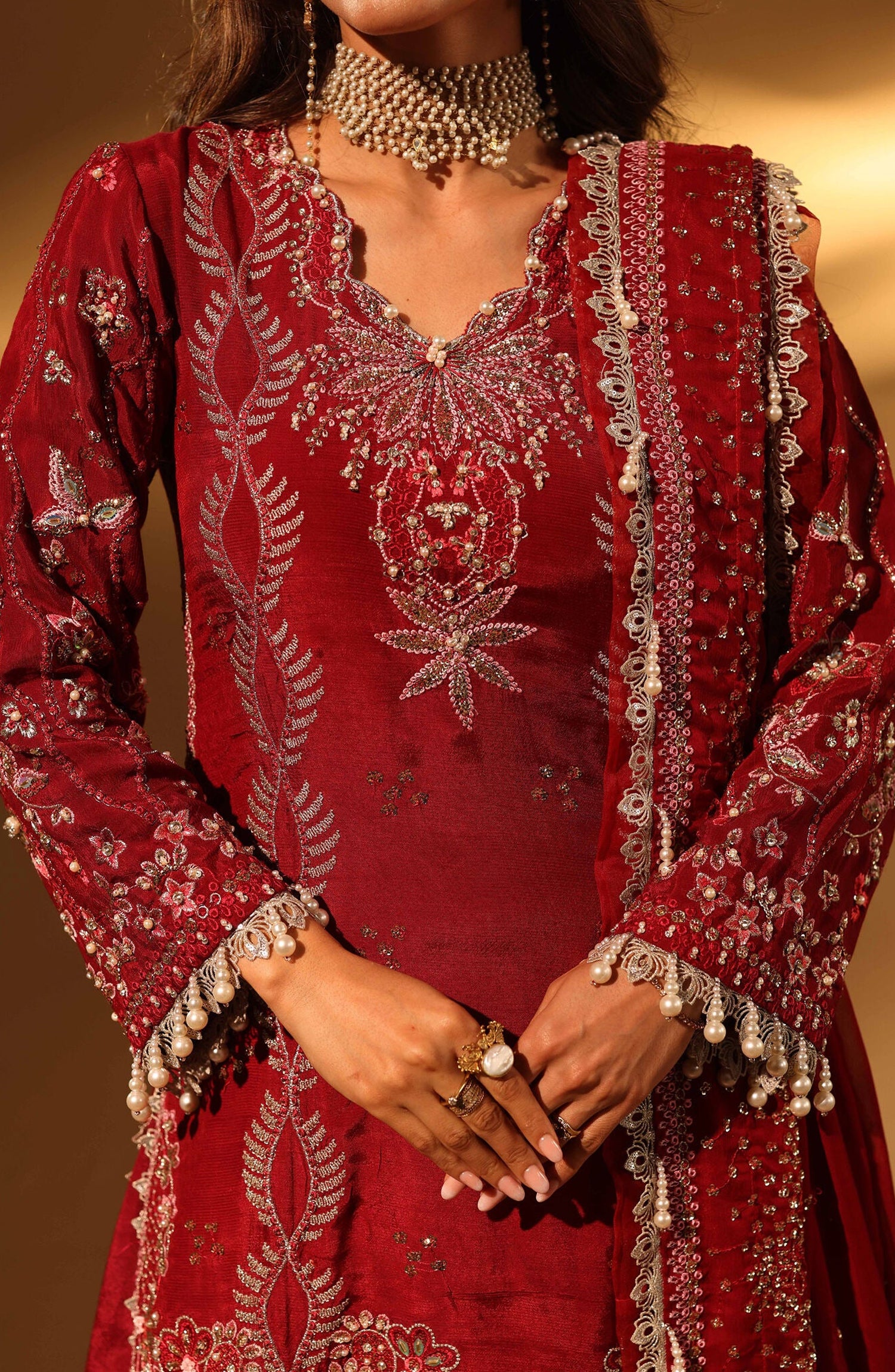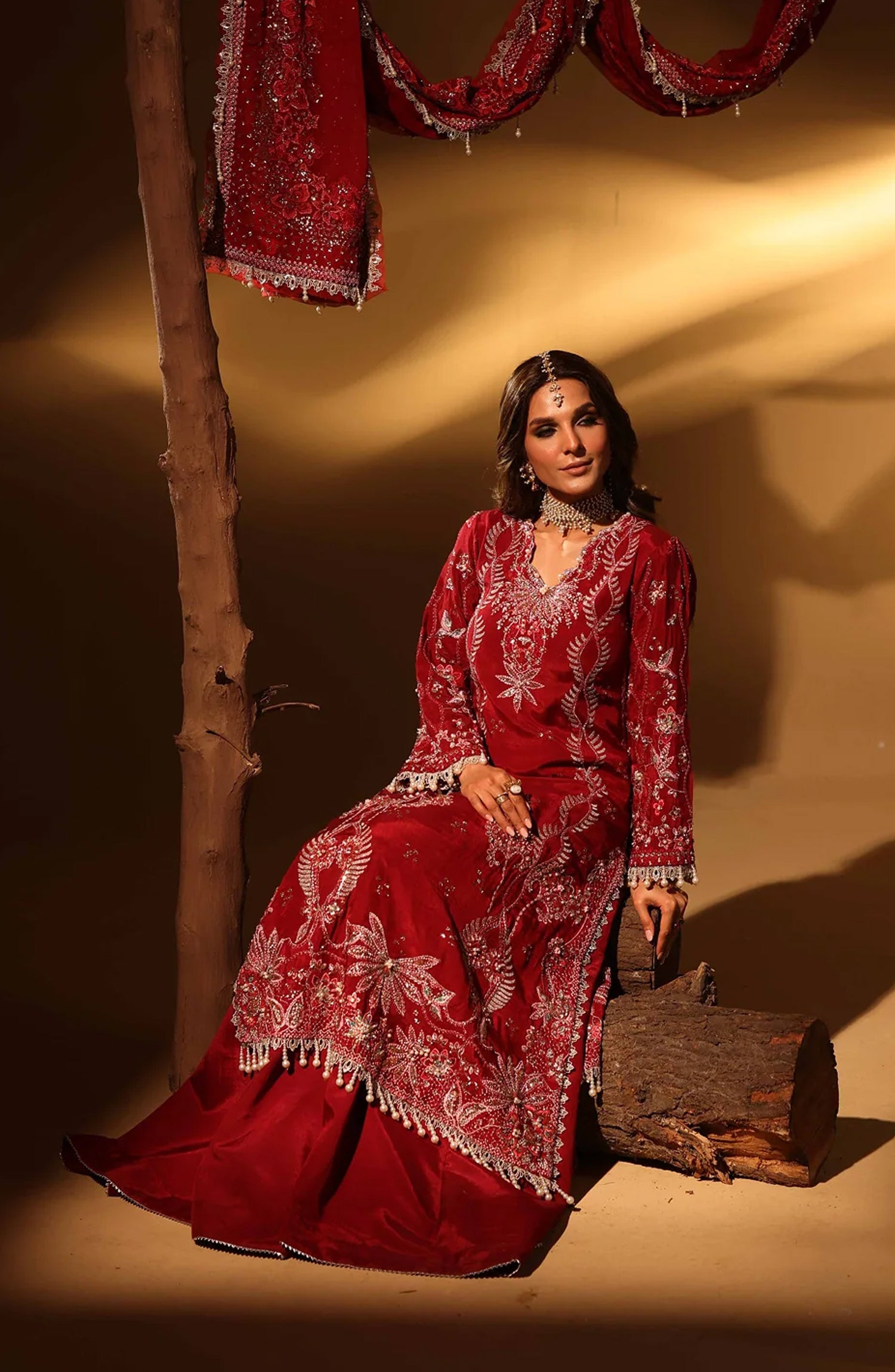 Aylin Luxury Embroidered Raw Silk Unstitched 3 Piece Suit - 02 Velory - AYL26SL - Red - Festive Collection
