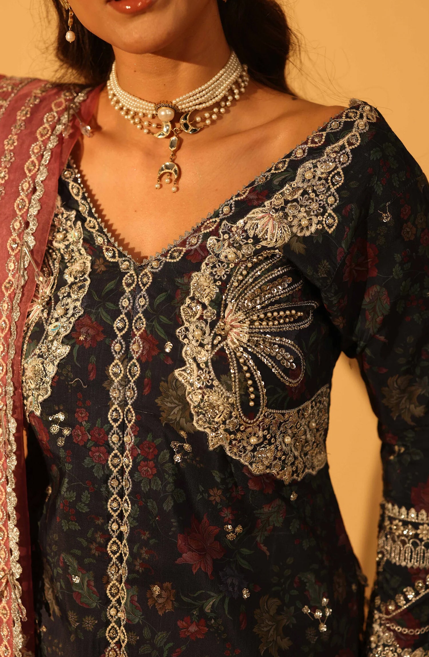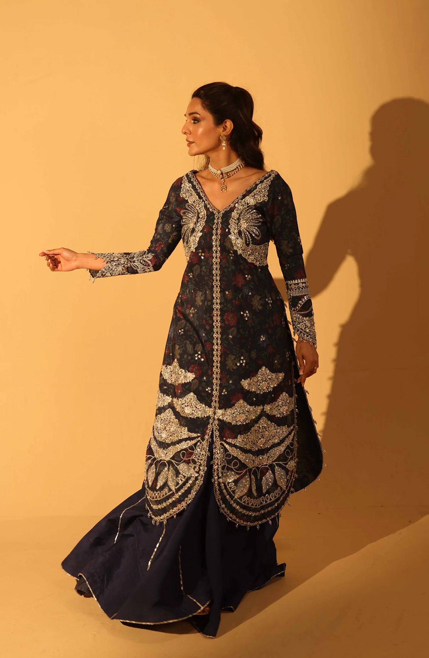 Aylin Luxury Embroidered Raw Silk Unstitched 3 Piece Suit - 07 Sapphire Dusk - AYL26SL - Black - Festive Collection