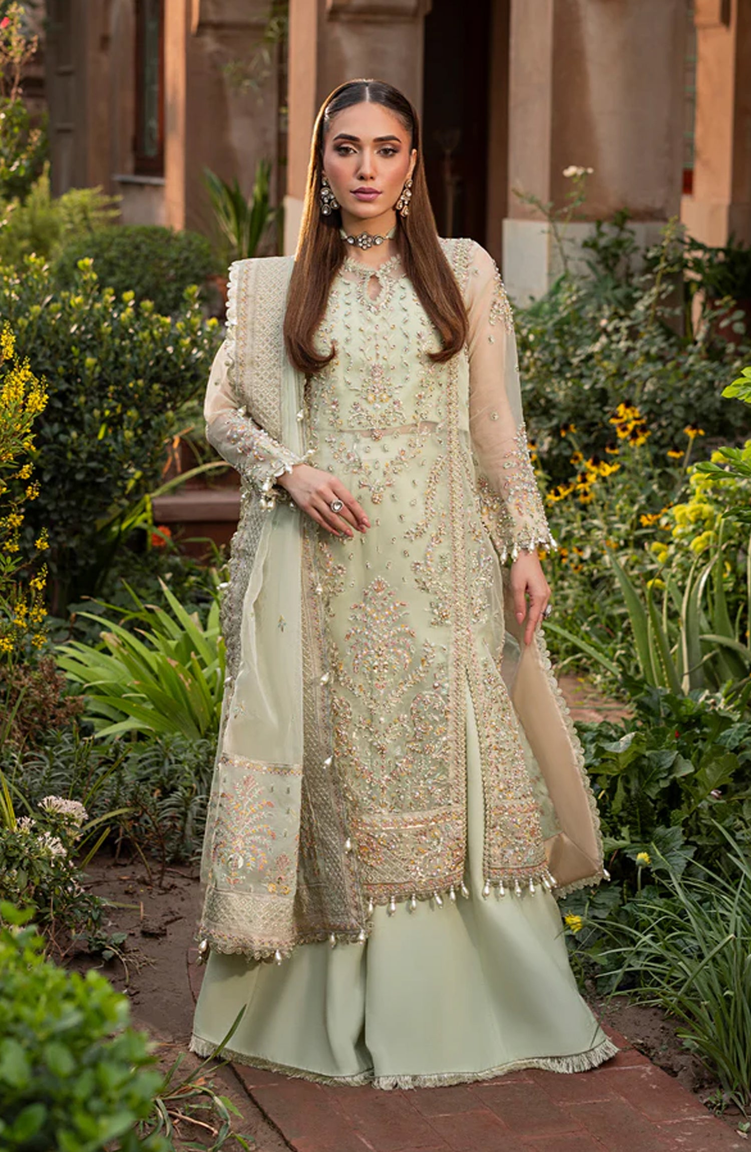 HAND EMBELLISHED DAMMAN BORDER FRONT (ORGANZA)