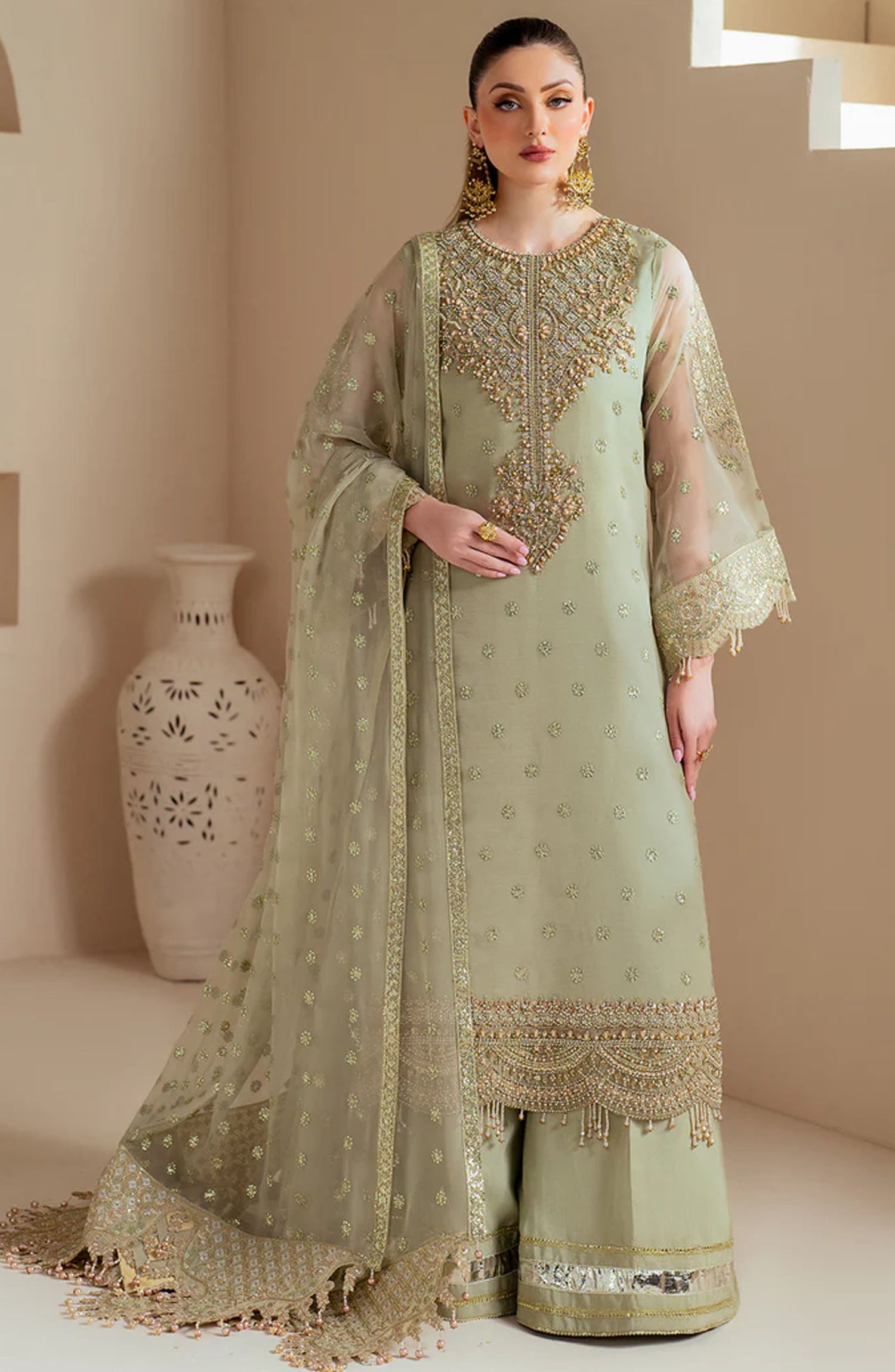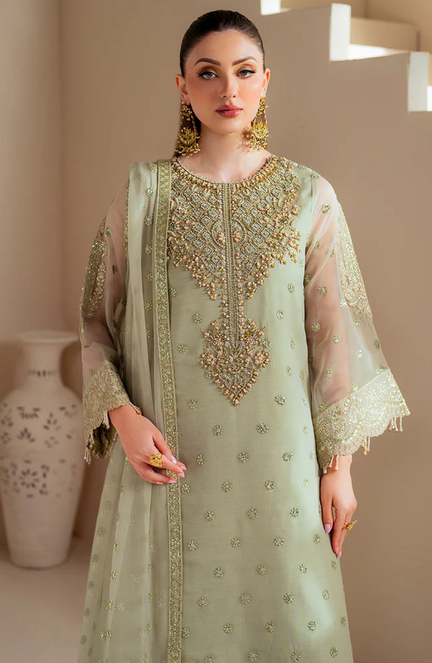 Aymal by Alizeh Embroidered Organza Unstitched 3 Piece Suit - AF-BHM-4042-Alish - ALZ25AYM - Green - Festive Collection