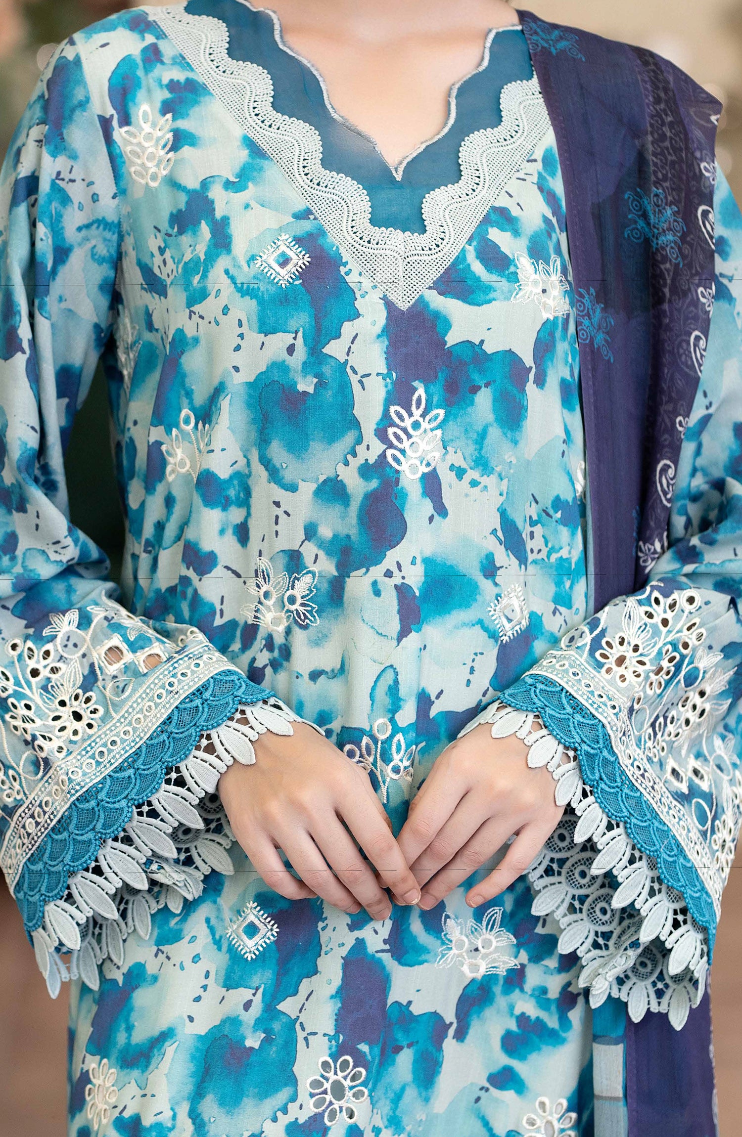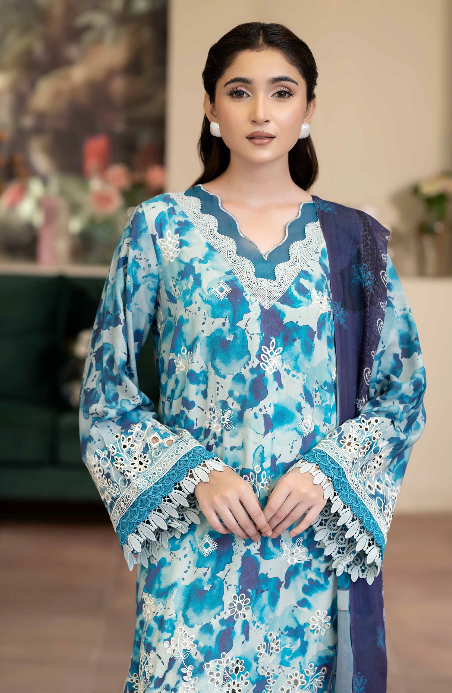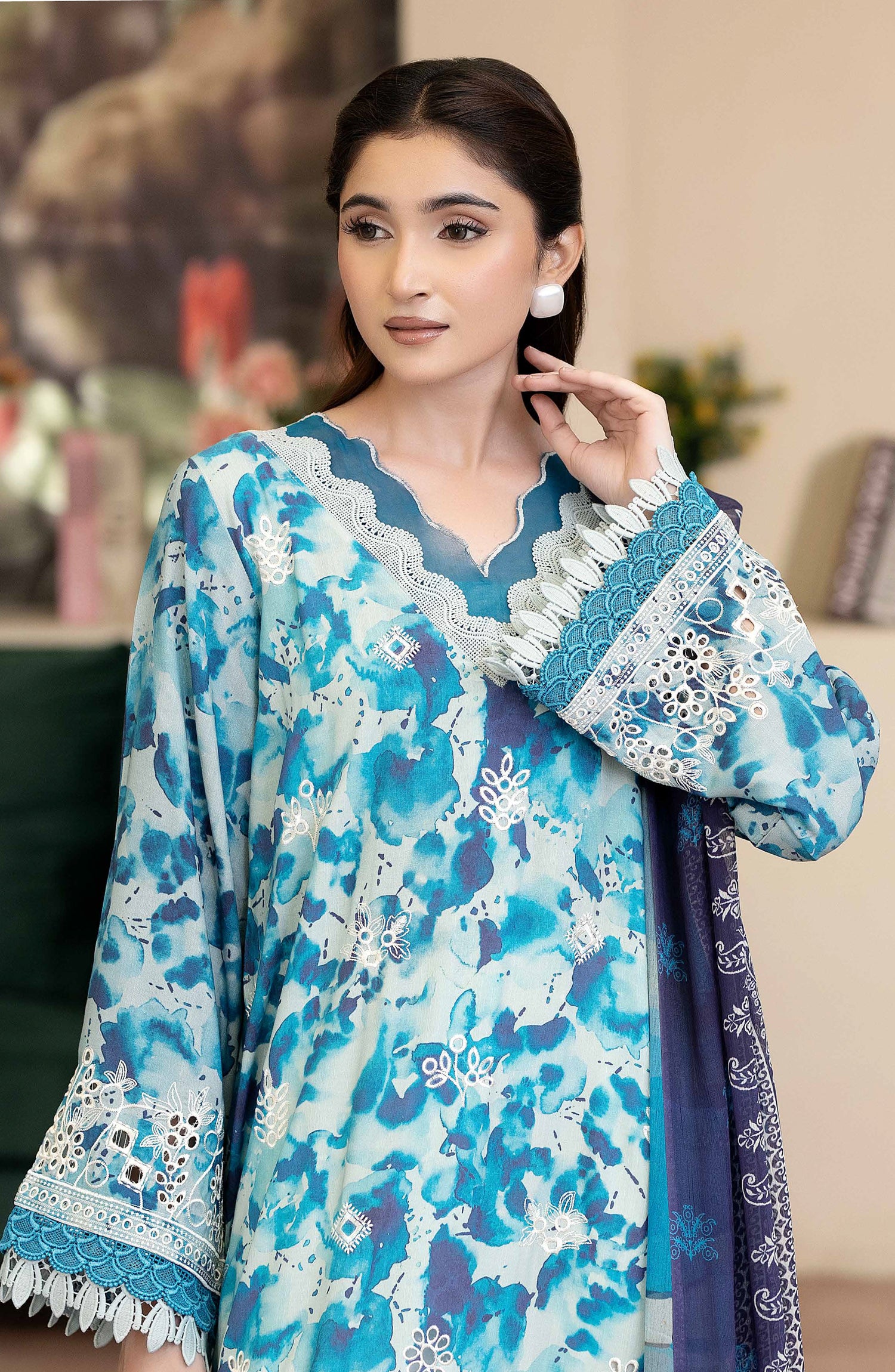 Printed and Embroidered Staple Slub Unstitched 3 Piece Suit with Printed Chiffon Dupatta