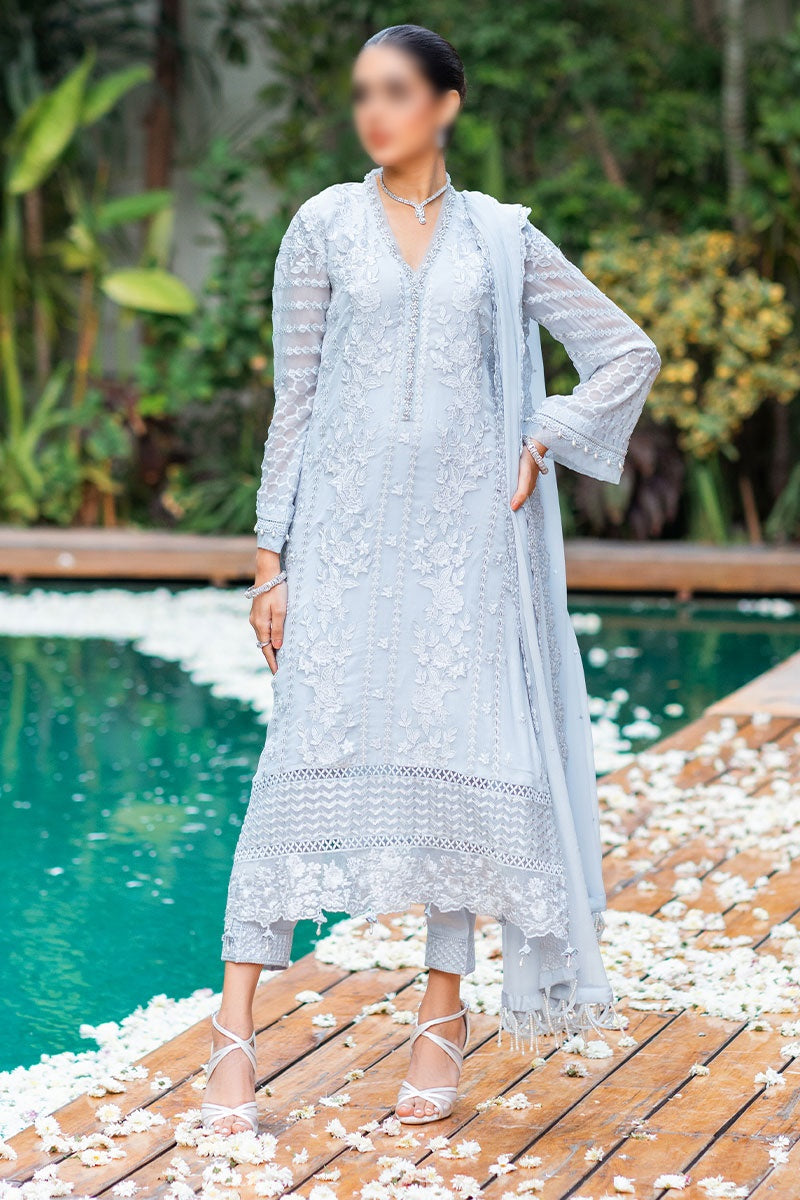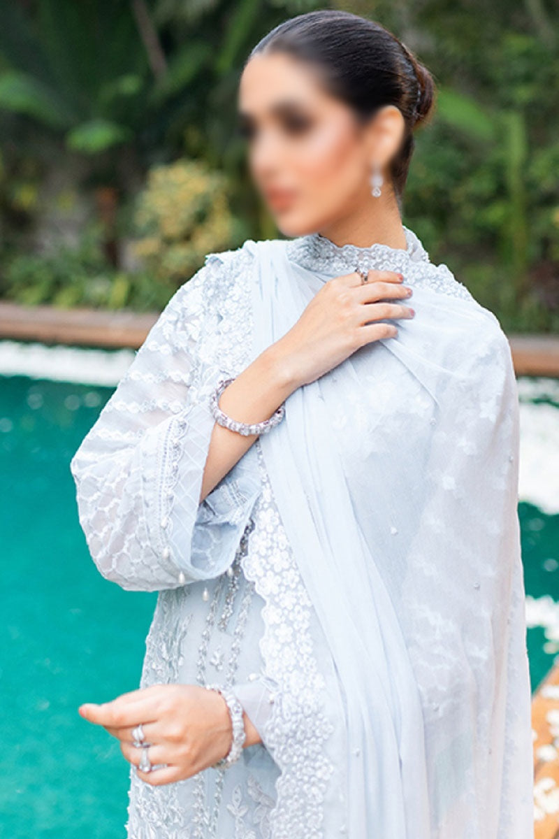 Azure Luxe Embroidered 3pcs Collection 2023 has been styled in the image for photography and illustrative purposes.