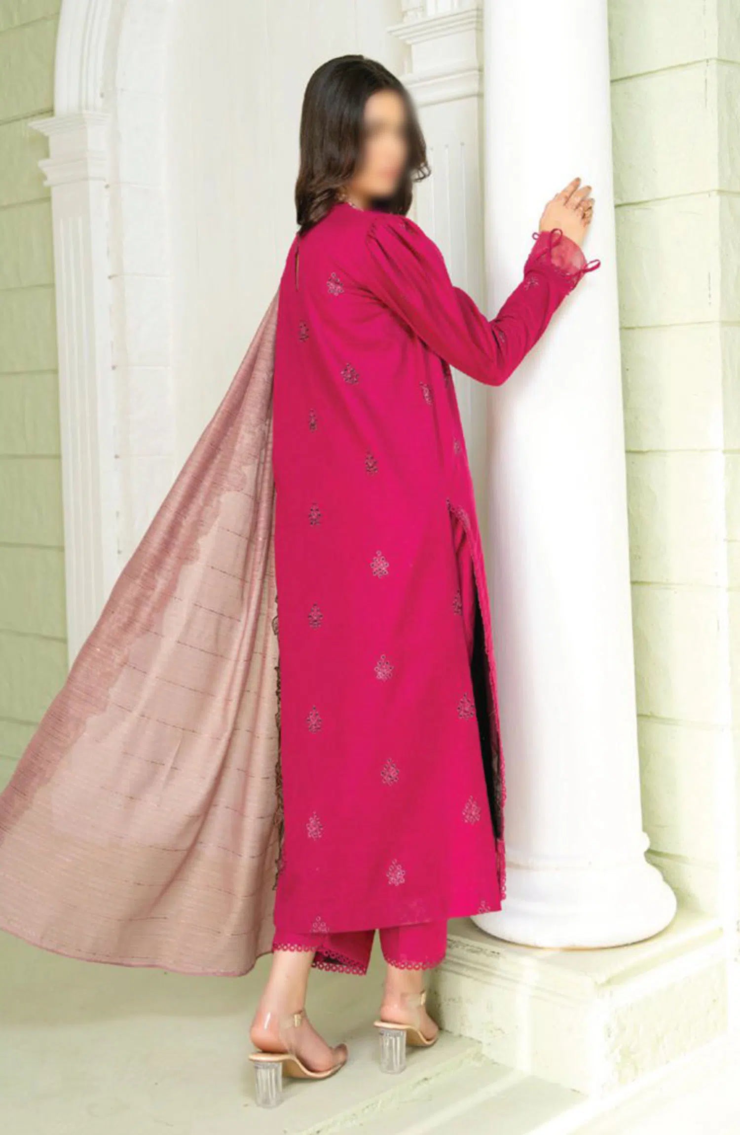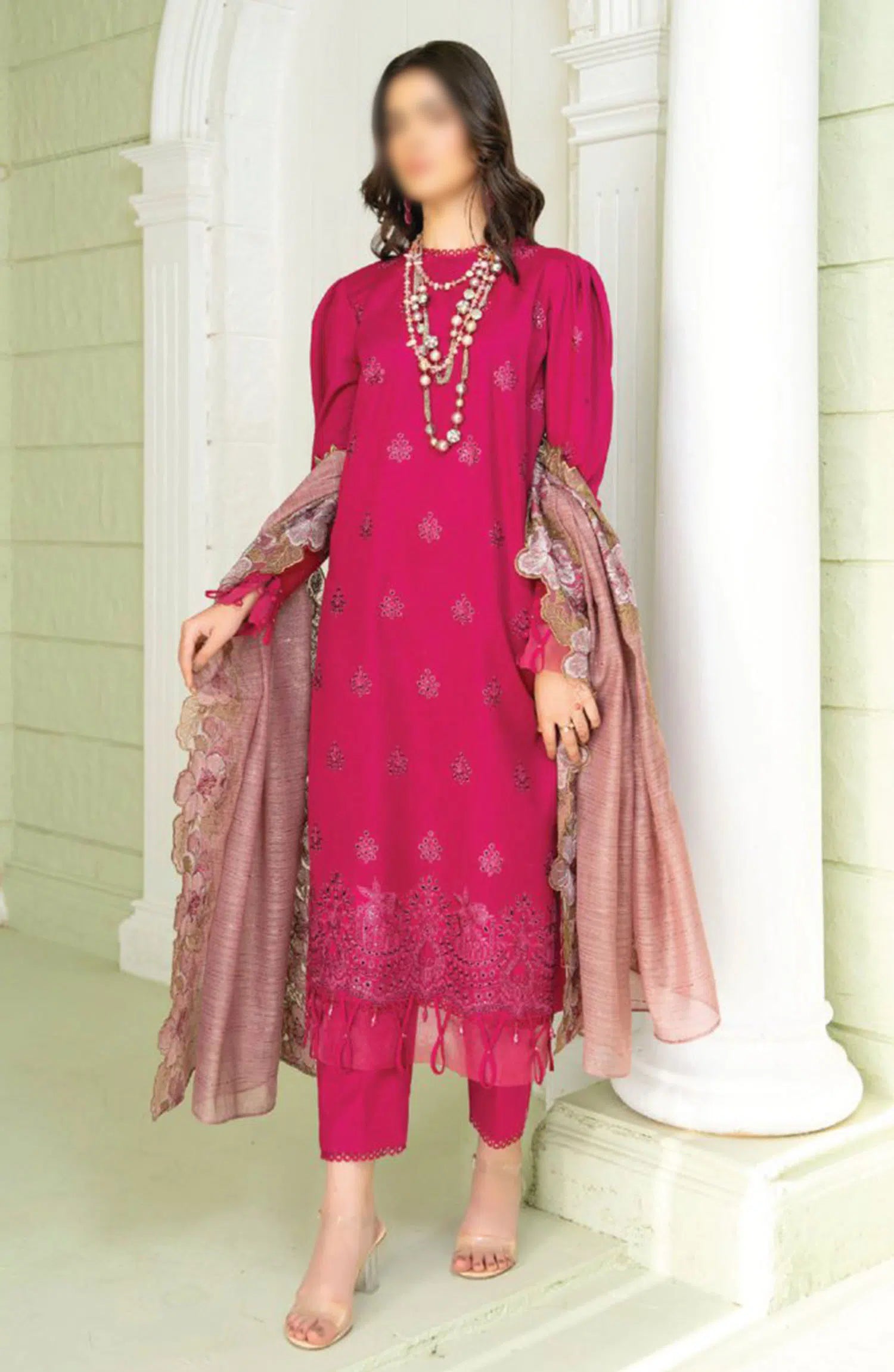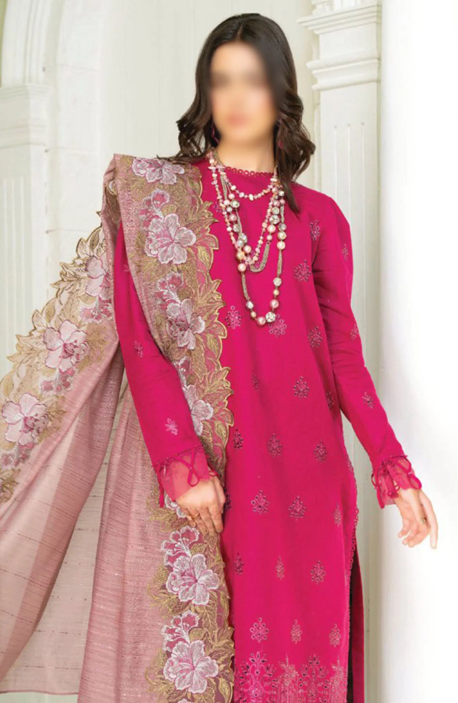 Amna Khadija Embroidered Crinkle Chiffon Unstitched 3 Piece Suit - D-04 - AM25LXC - Pink - Formals Collection