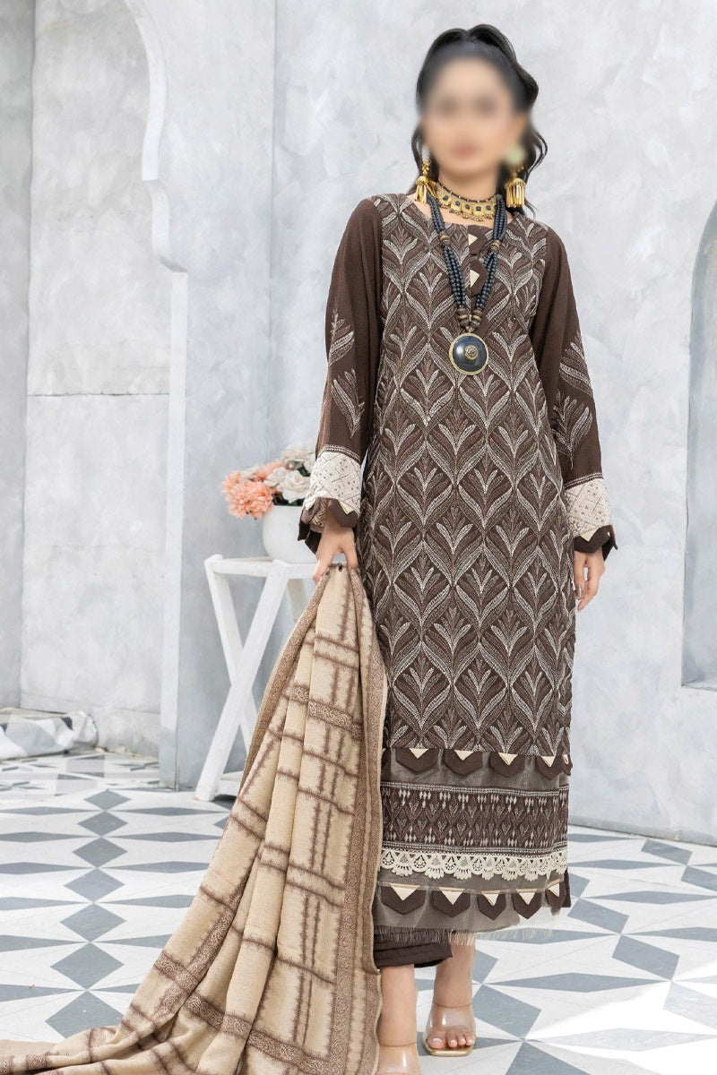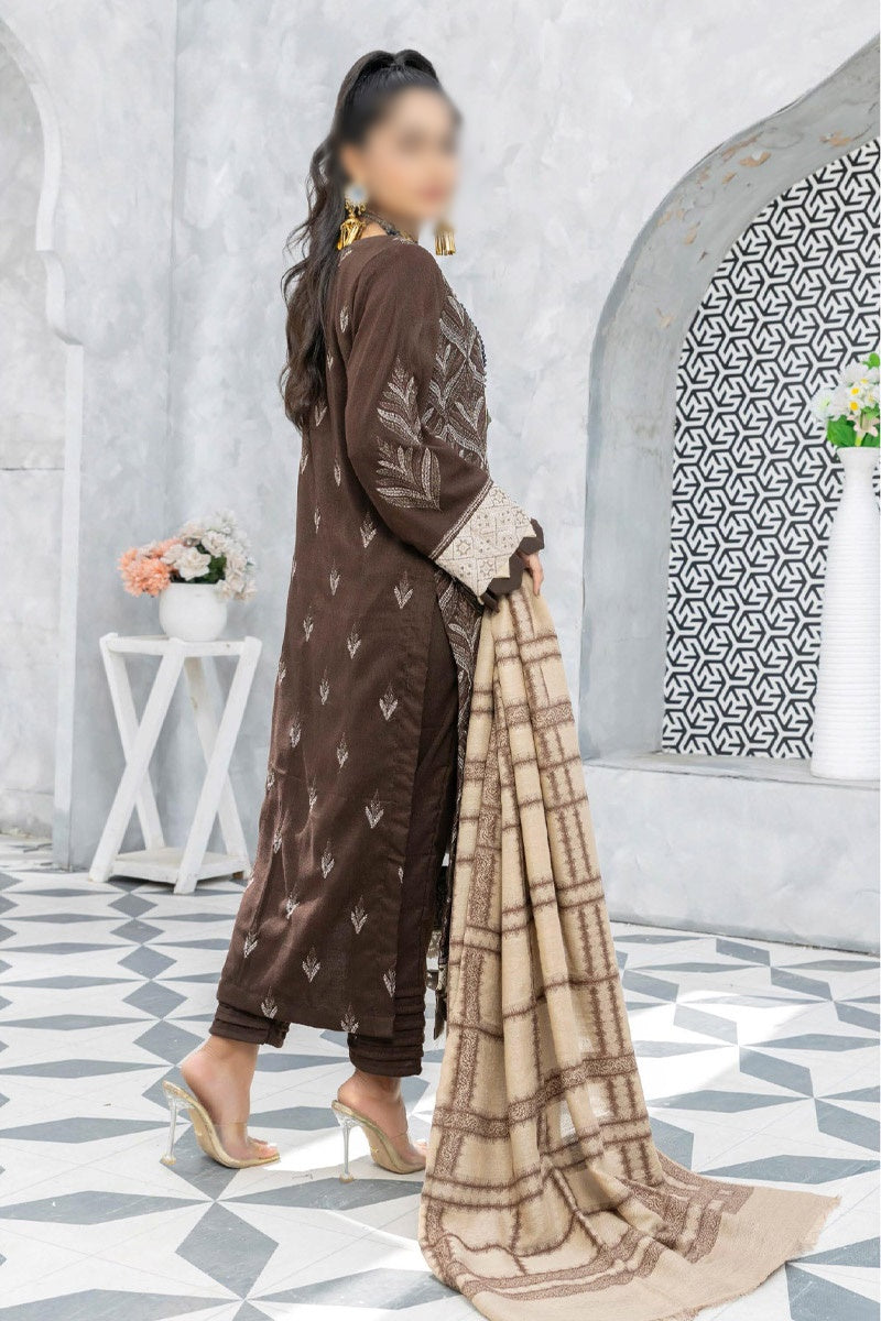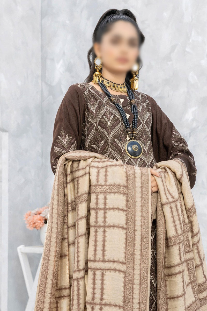 Home Baghban Leather Peach Embroidered Wool Shawl Collection 2023 - Design 04