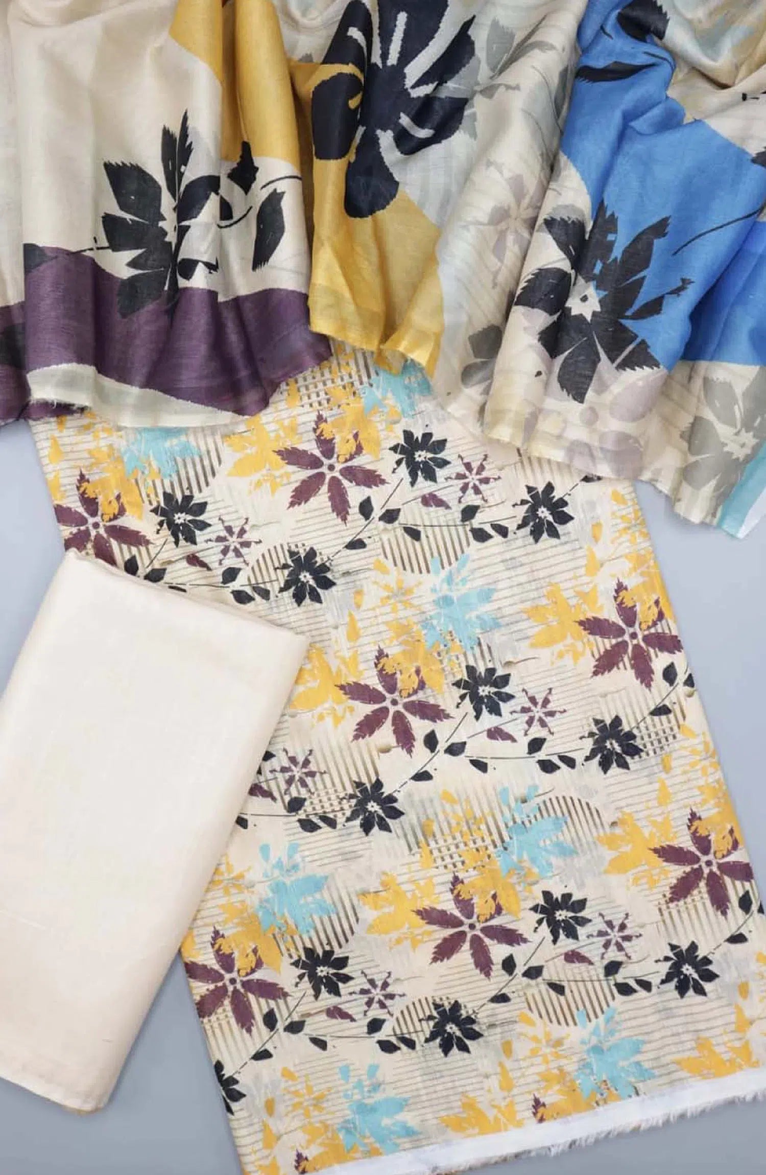 3 Piece Printed Un Stitched Suit with Voile Dupatta