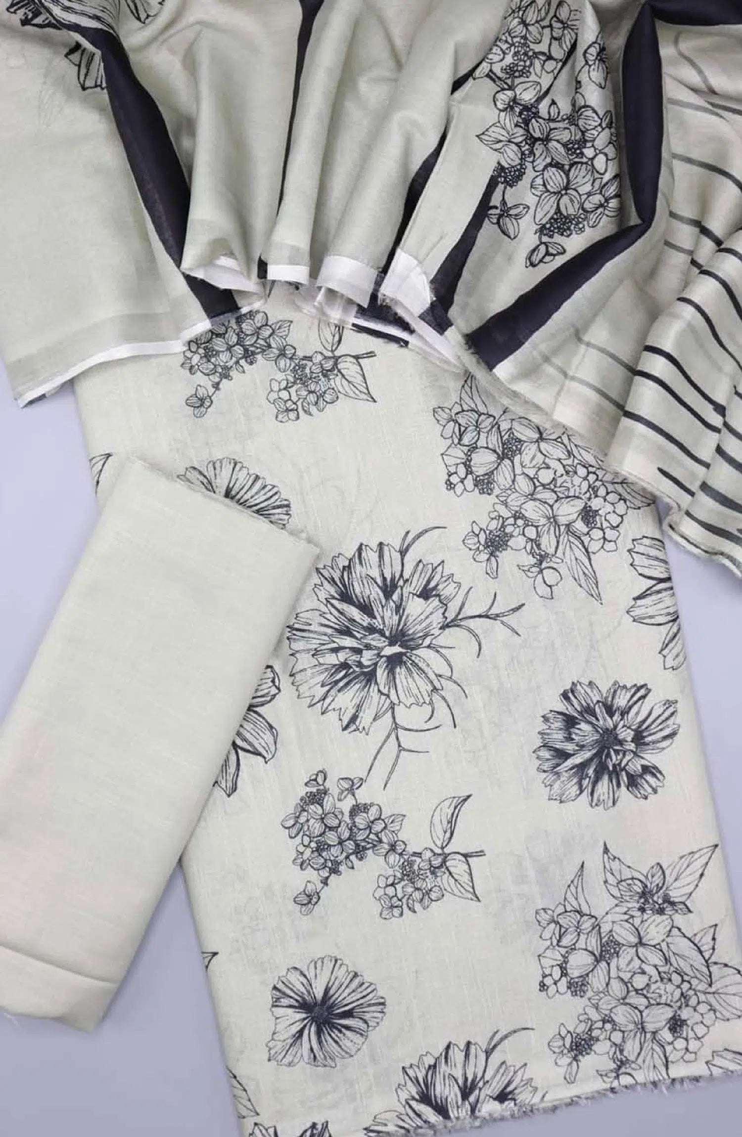 3 Piece Printed Un Stitched Suit with Voile Dupatta