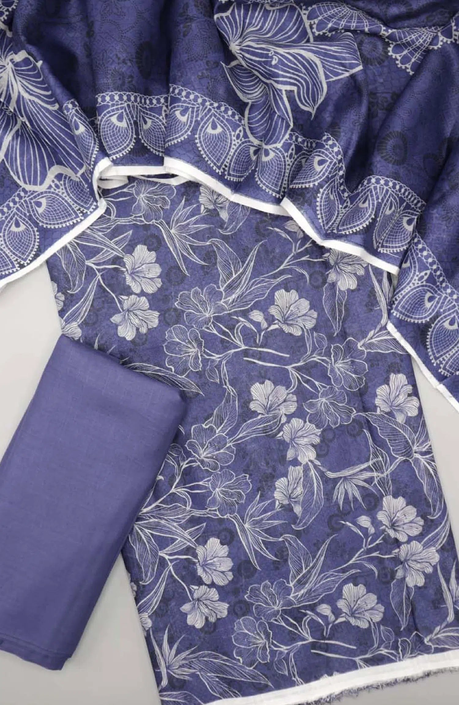 3 Piece Printed Un Stitched Suit with Voile Dupatta