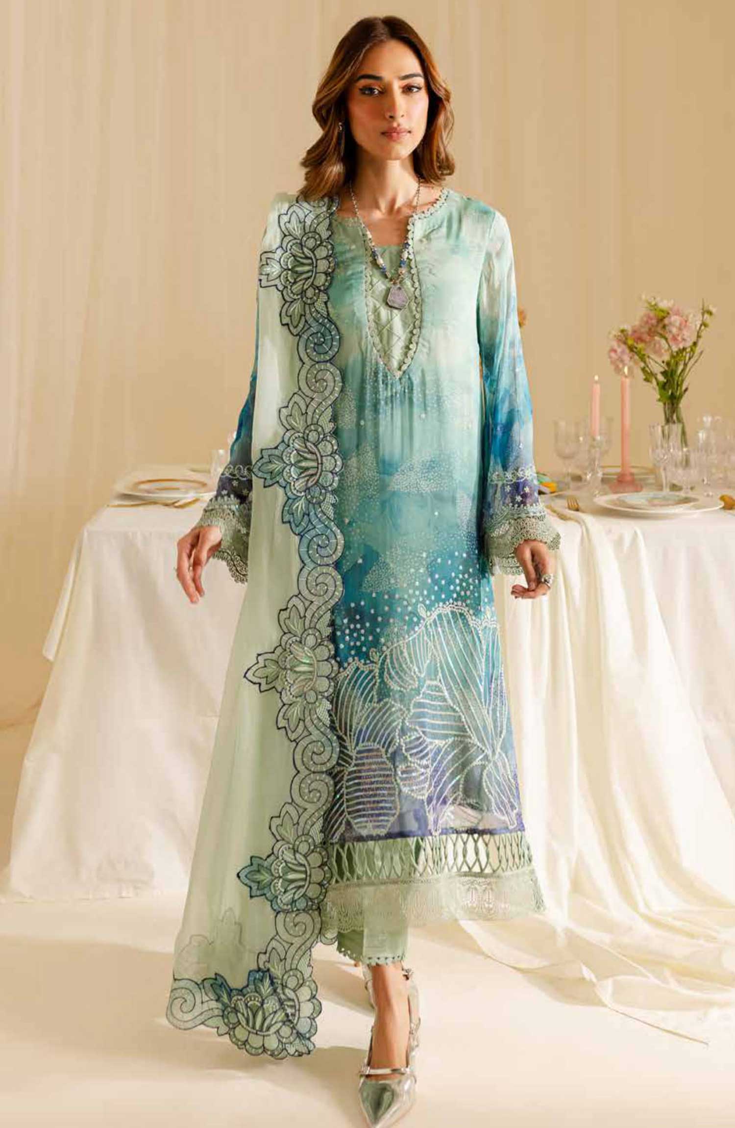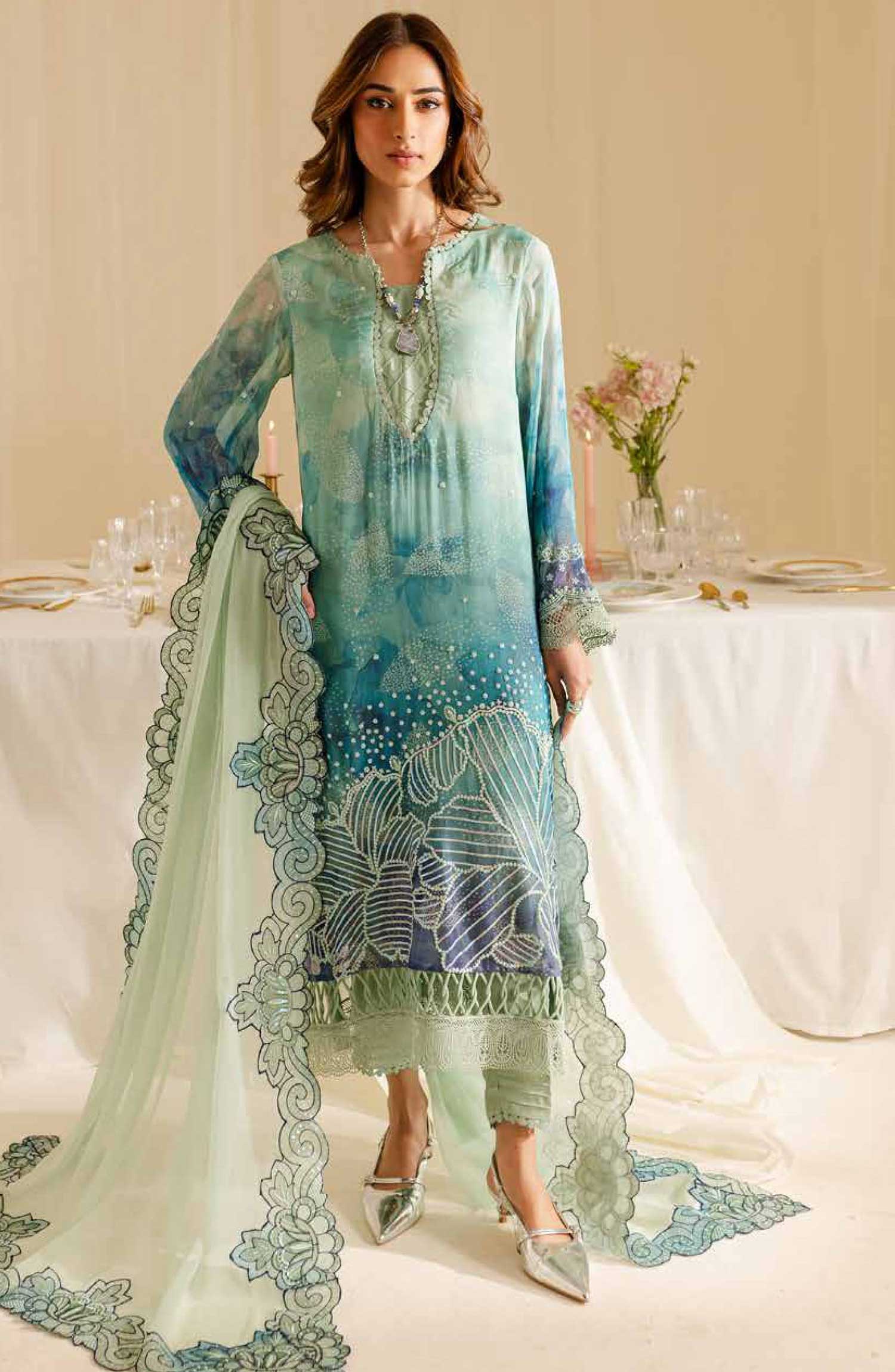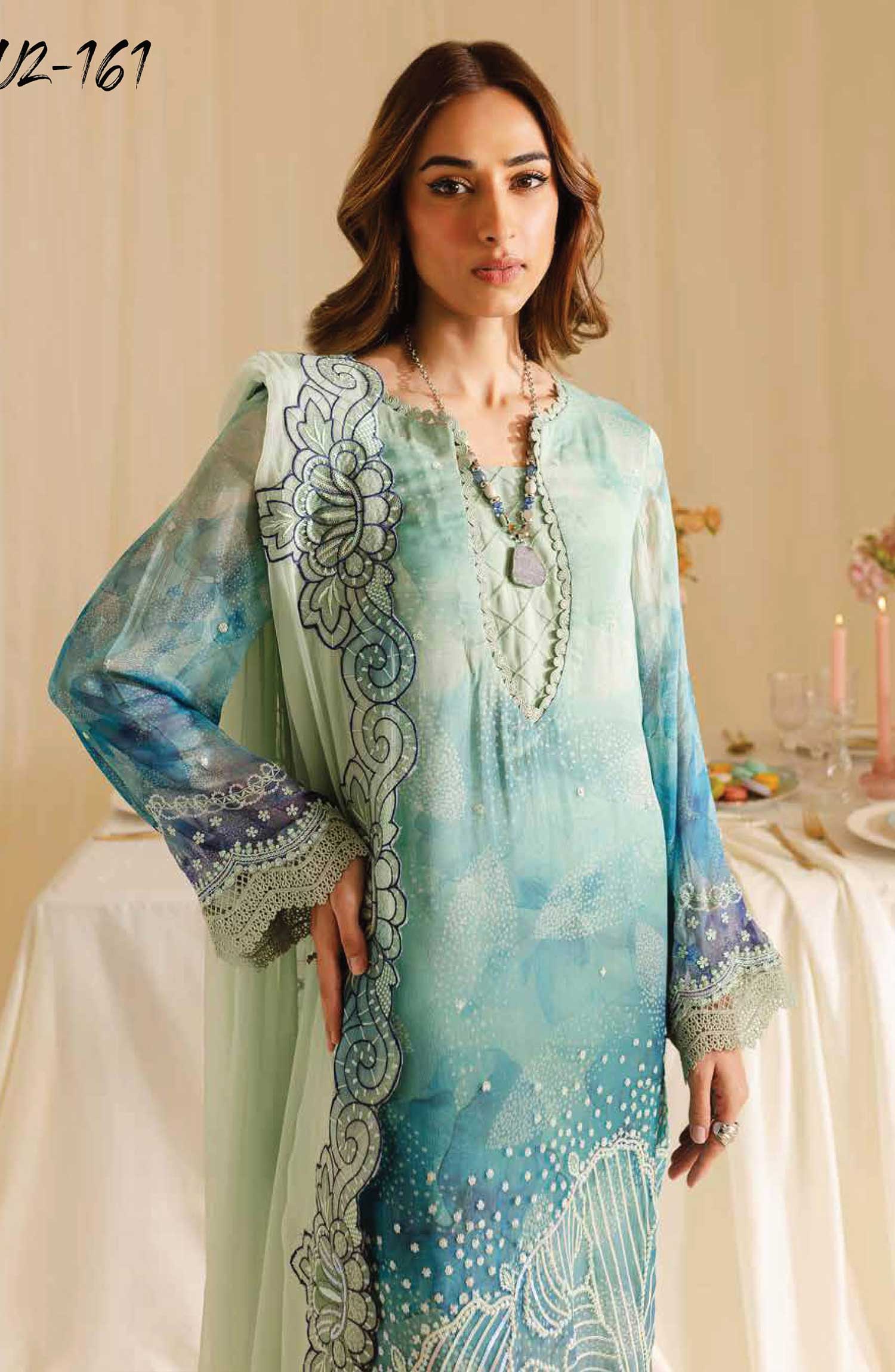 Amna Khadija Embroidered Crinkle Chiffon Unstitched 3 Piece Suit - D-01 - AM25LXC - Blue - Formals Collection