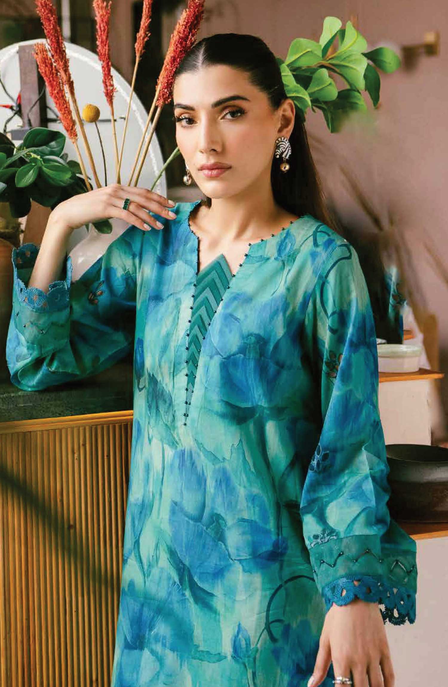 • PRINTED AND EMBROIDERED CHIKANKARI LAWN SHIRT