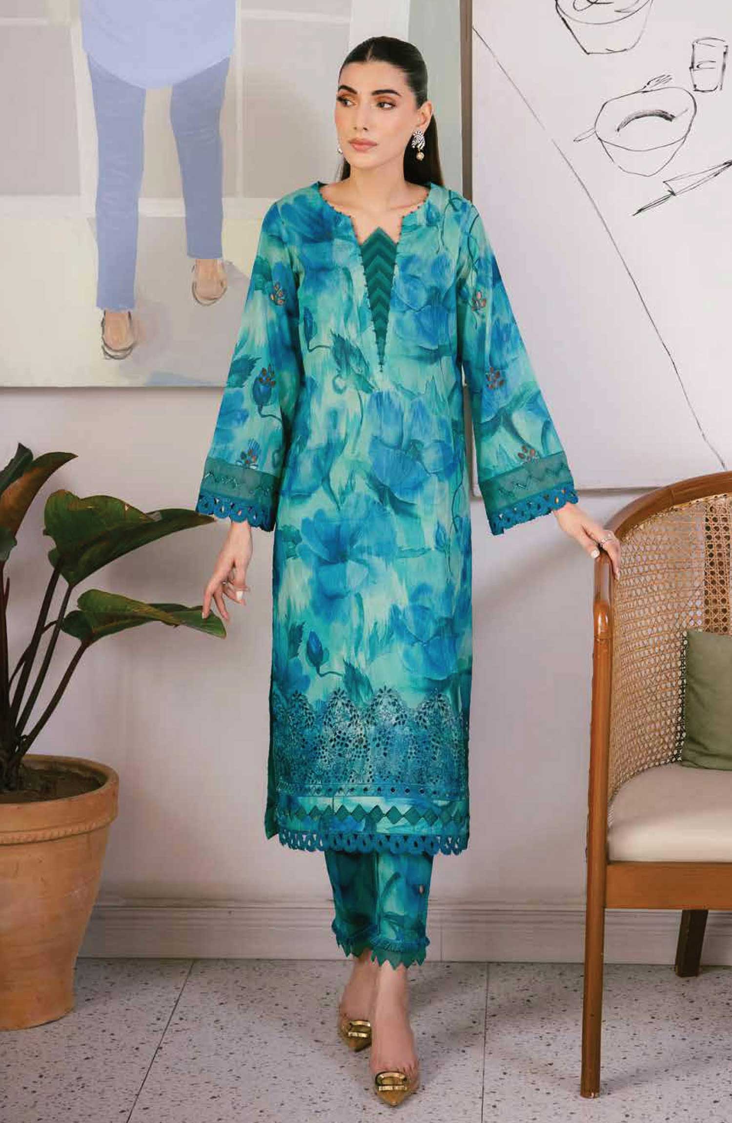The standard style comes as a long-sleeved kameez and trouser/shawlar.