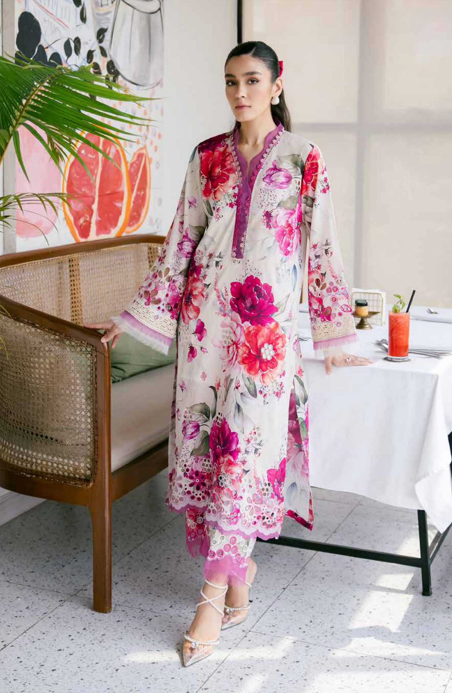 Nureh Ballerina Embroidered Unstitched 2 Pc Chikankari Collection 2025 has been styled in the image for photography and illustrative purposes.
