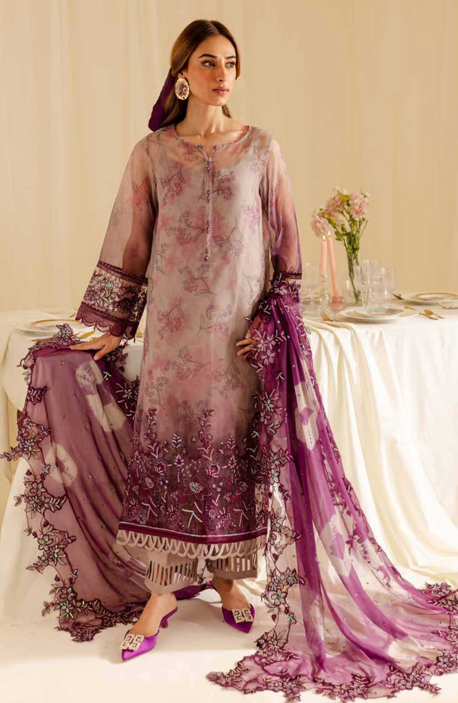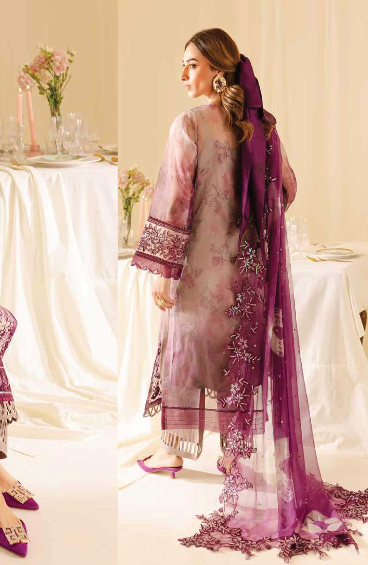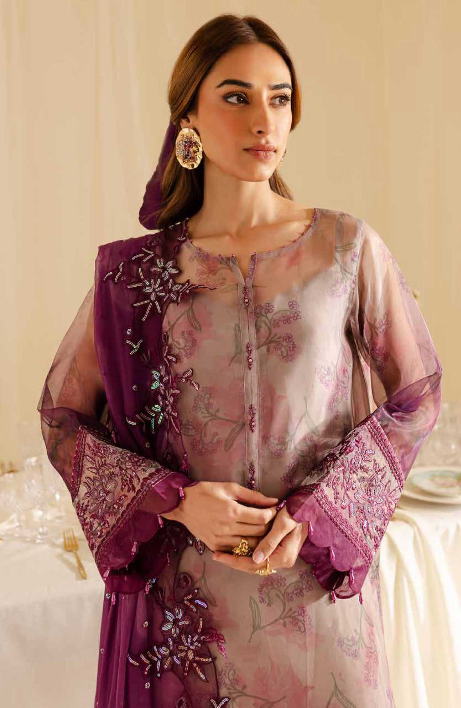 Nureh Embroidered And Embellished Chiffon Collection has been styled in the image for photography and illustrative purposes.
