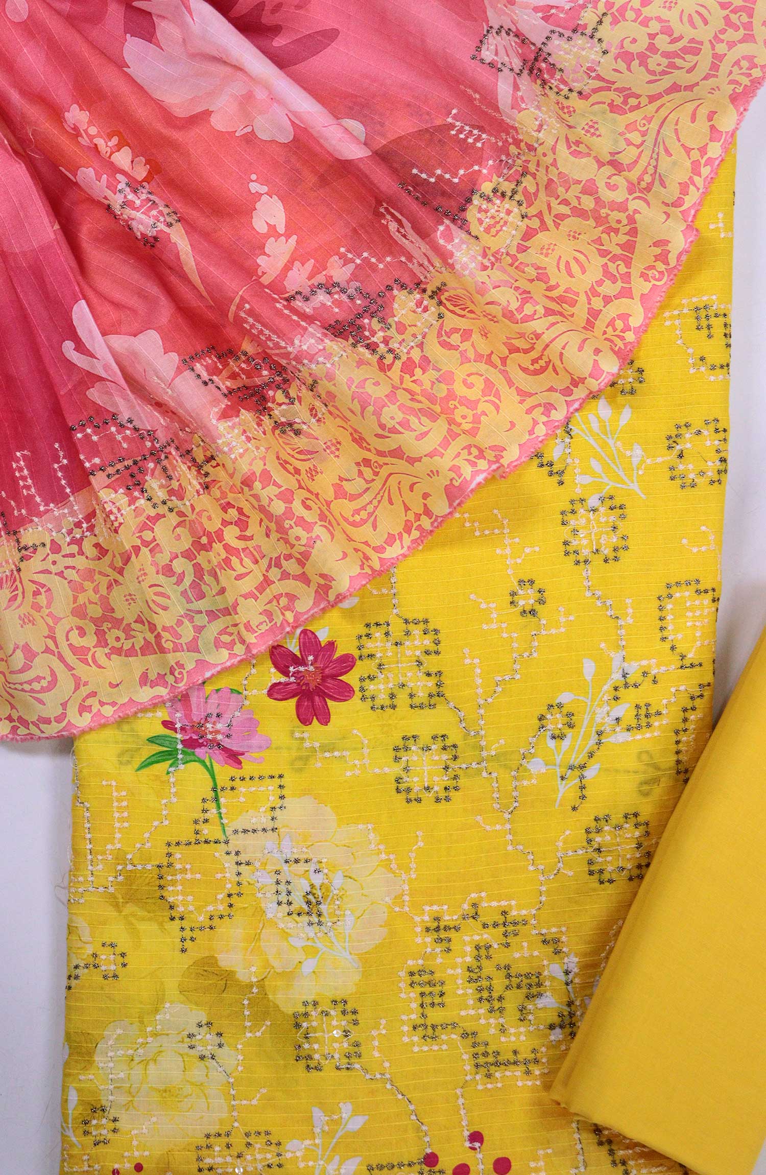 Home Bana Dora by Amna Khadija Embroidered Lawn Unstitched 3 Piece - D-01 - AM25BDV7 - Light Pink - Summer Collection