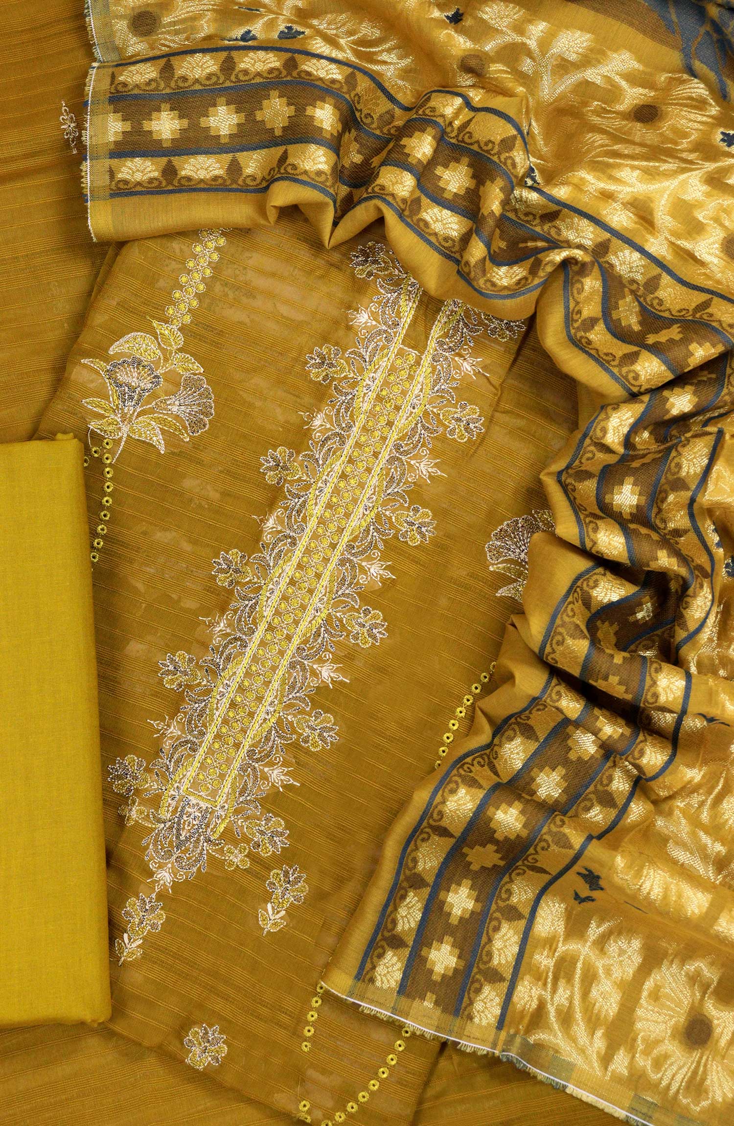 The standard style comes as a long-sleeved kameez with dupatta and trouser/shawlar.