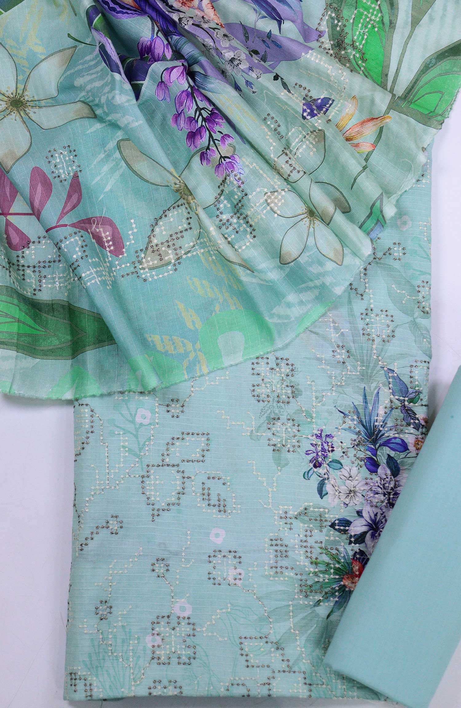 Ishqia by Casual Lite Premium Embroidered Silk Viscose Stitched 3 Piece Suit - Design-04 - CL25ISHQ - Green - Festive Collection