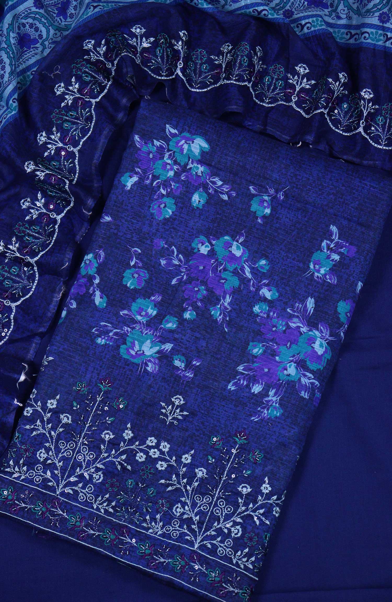 Modest Embroidered Chiffon Stitched 3 Piece Suit - 9840-Cblu - MOD25PRF - Blue - Festive Girls Collection