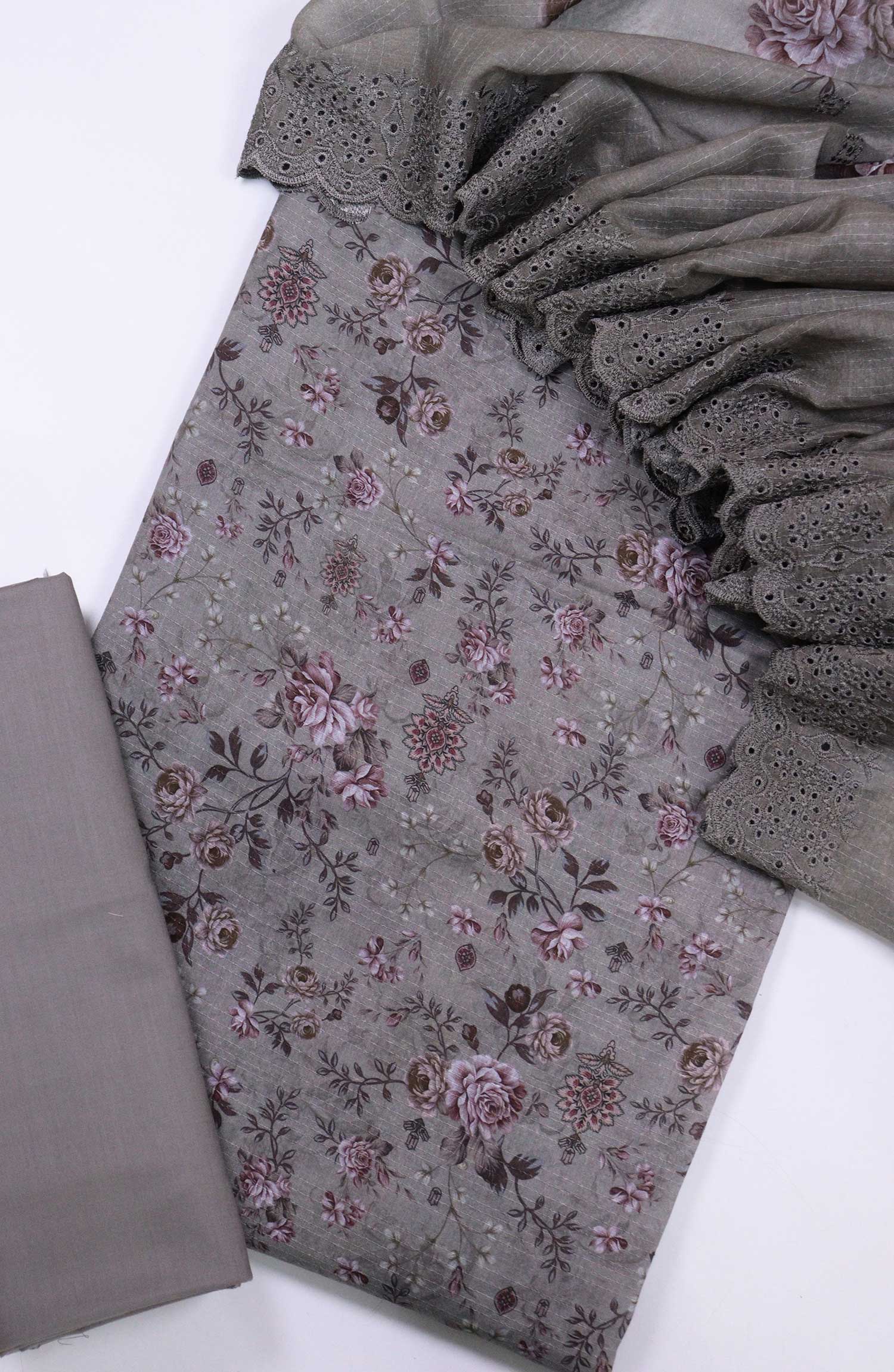 Home Bana Dora by Amna Khadija Embroidered Lawn Unstitched 3 Piece - D-05 - AM25BDV8 - Dark Grey - Summer Collection