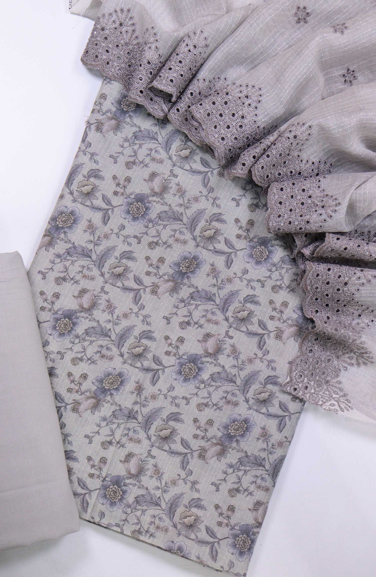 Bana Dora by Amna Khadija Embroidered Lawn Unstitched 3 Piece - D-08 - AM25BDV8 - Light Grey - Summer Collection