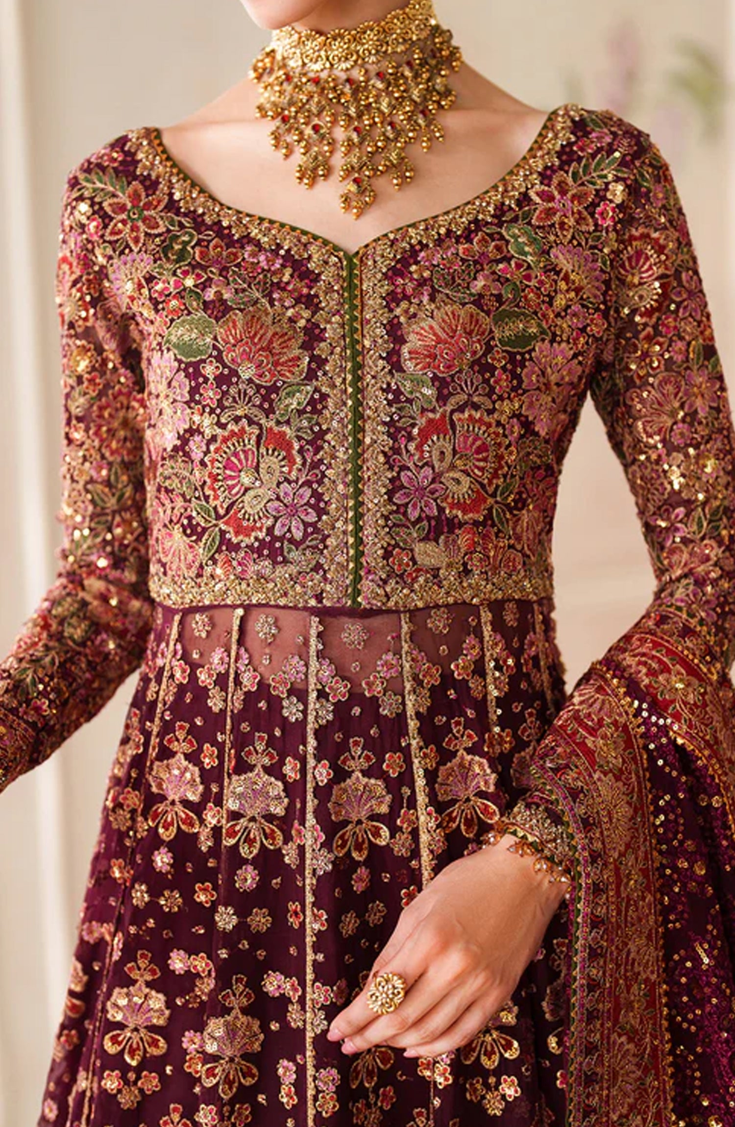 Adorned with exquisite handwork of nakshi, dabka, and pearls, paired with elaborate embroidery in sequins and zari — creating a perfect balance of opulence and grace.