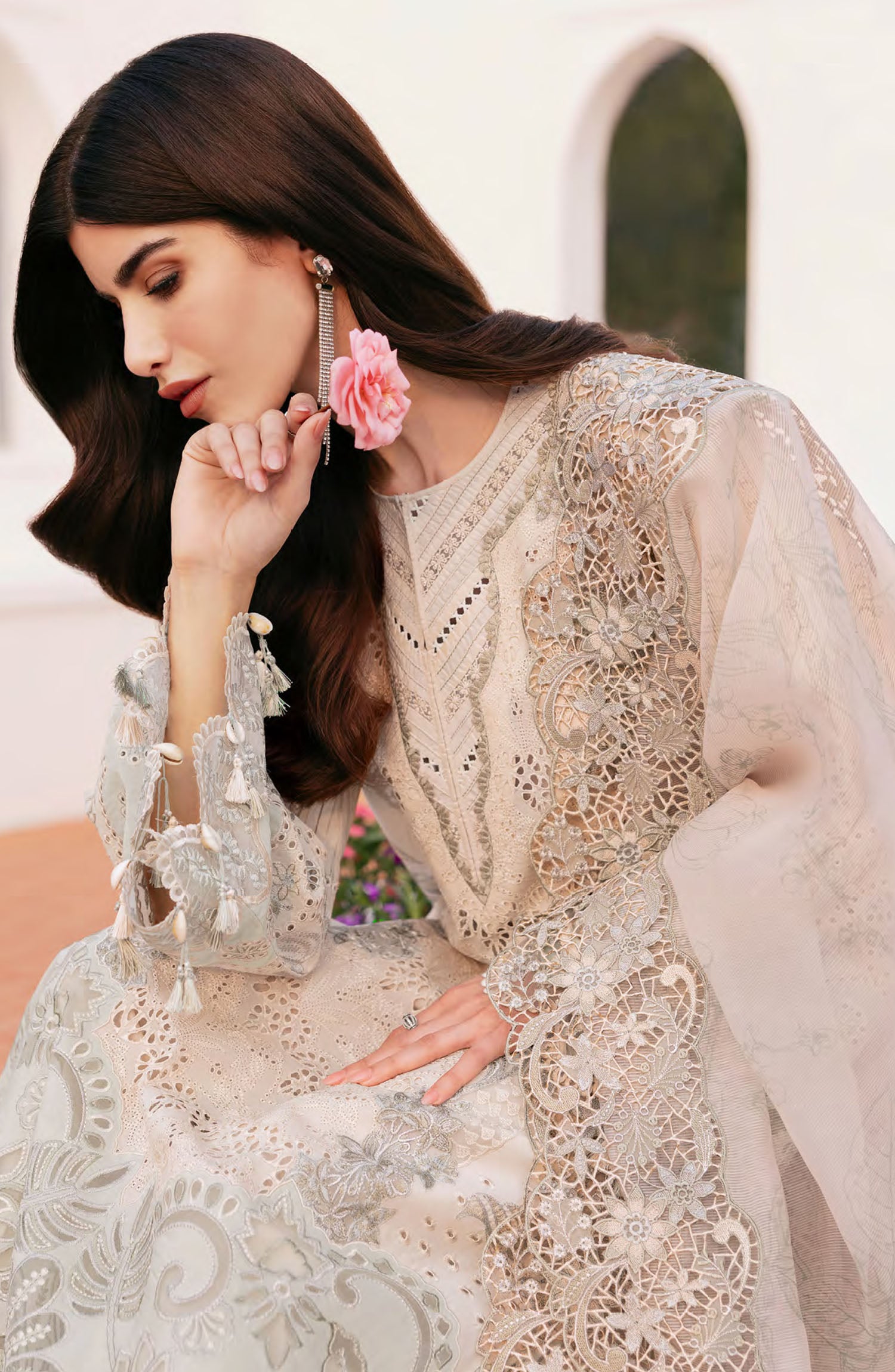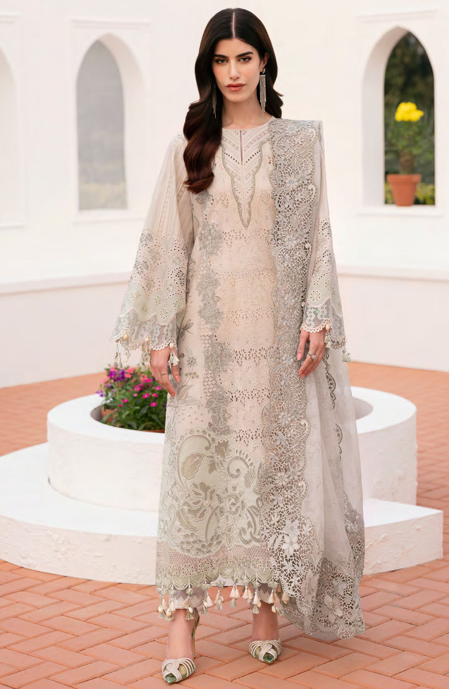 Baroque Embroidered Lawn Unstitched 3 Piece Suit - BEL-25-D04 - BQ25DEL - White - Summer Collection