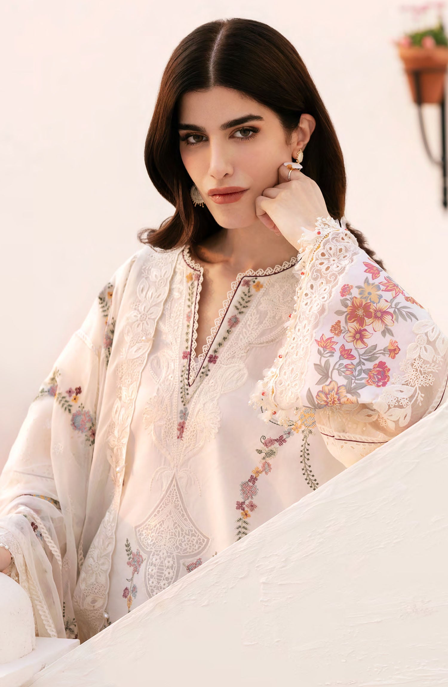 Baroque Embroidered Lawn Unstitched 3 Piece Suit - BEL-25-D06 - BQ25DEL - White - Summer Collection
