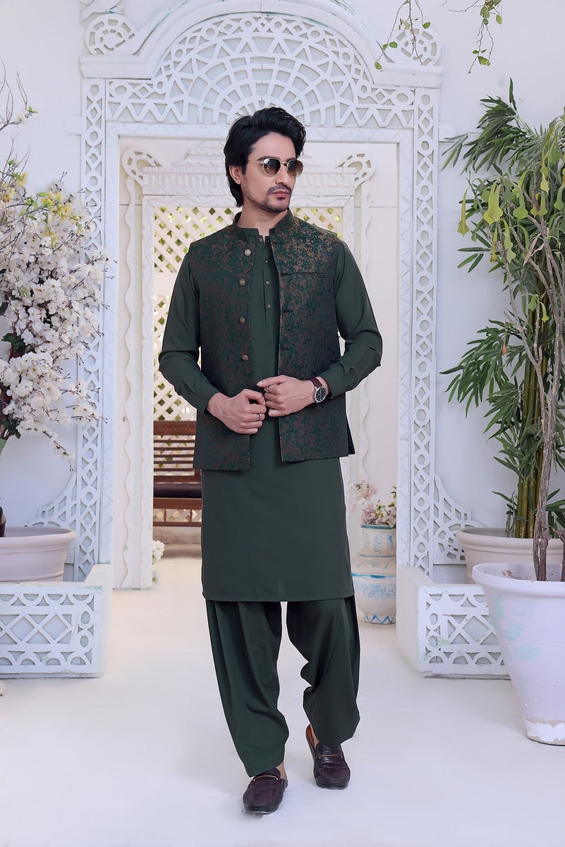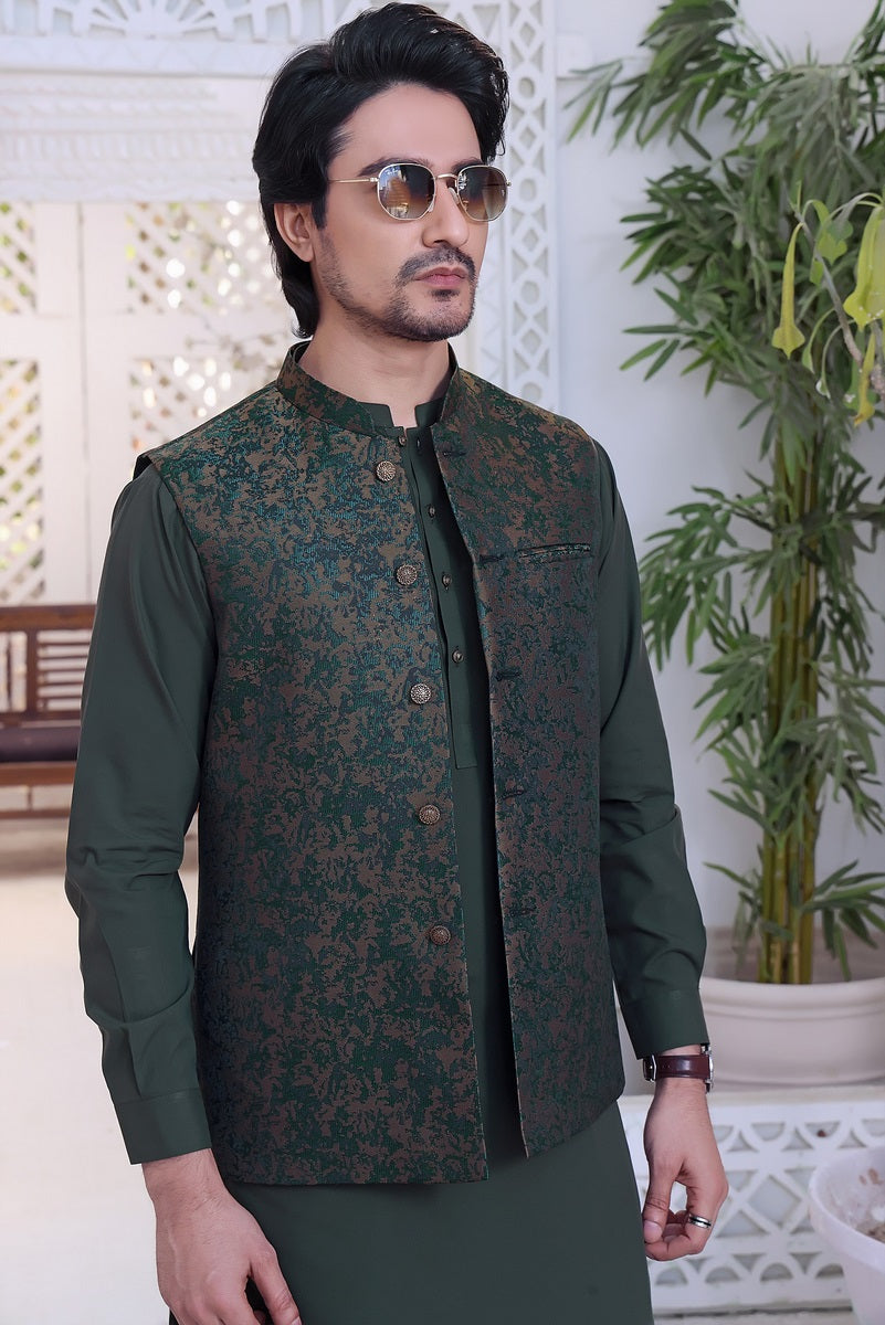 Menâs Formal Velvet Waistcoat and Blended Suit with Motive on Front Pocket.
