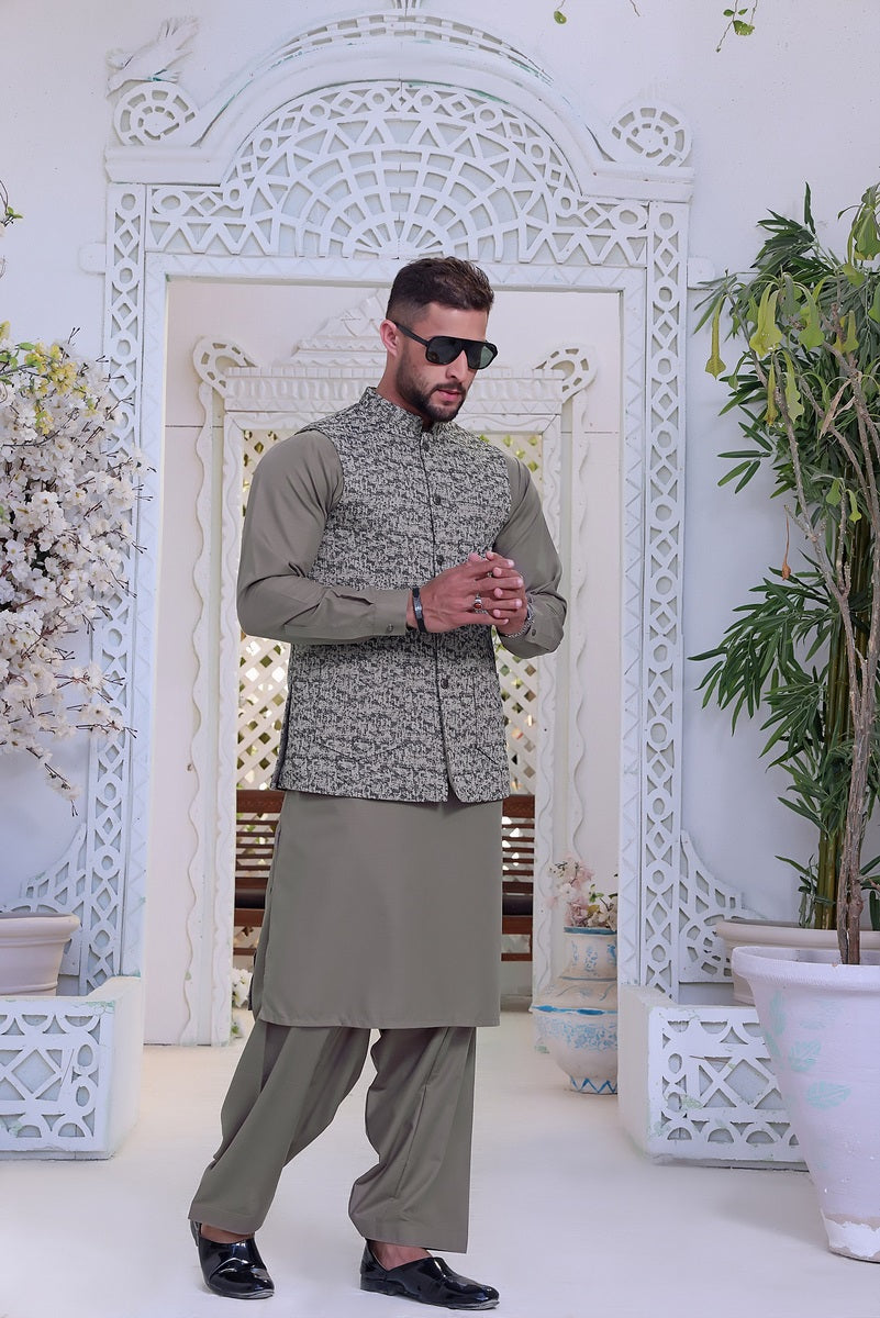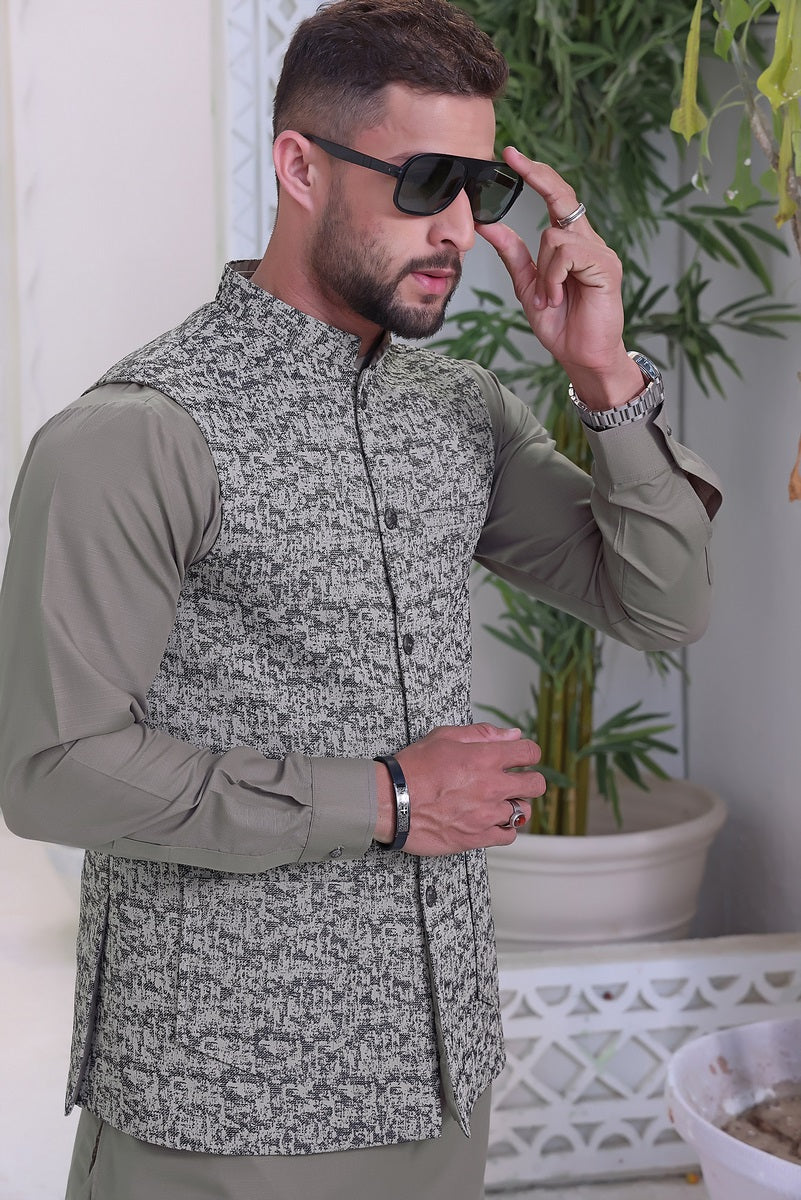 Menâs Formal Velvet Waistcoat and Blended Suit with Motive on Front Pocket.