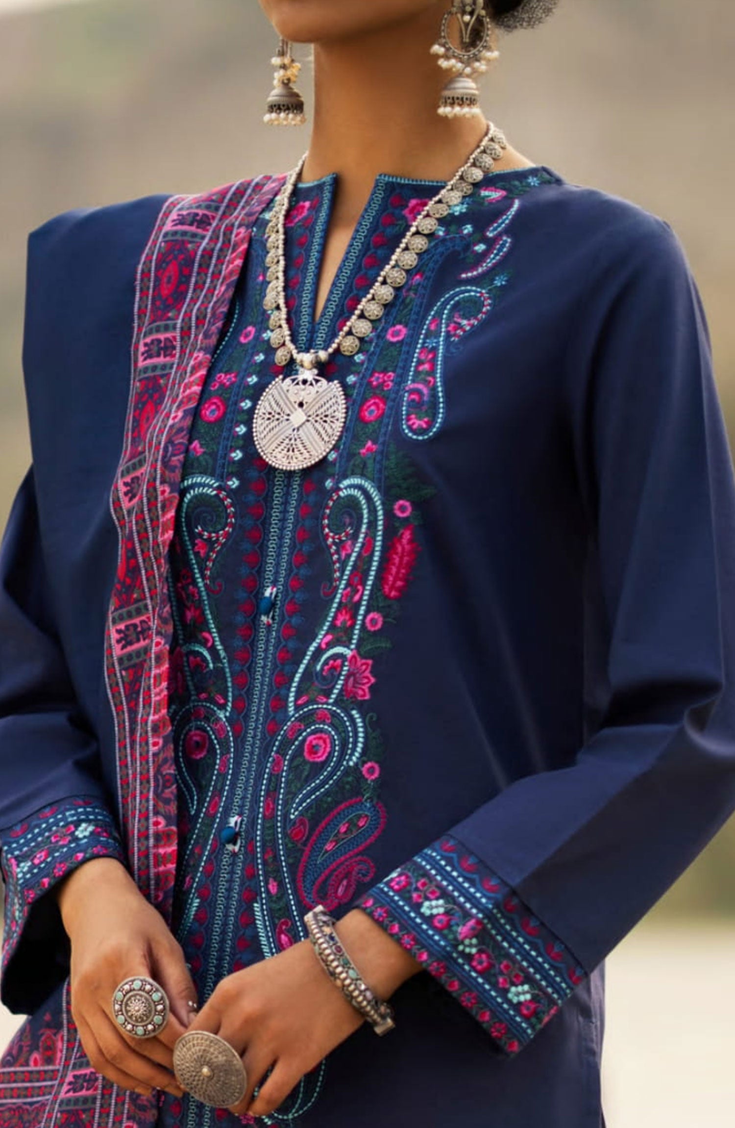 Cross Stitch by Amna Khadija Embroidered Swiss Voile Unstitched 3 Piece Suit - Design-01 - AM25CWV - Blue - Luxury Collection