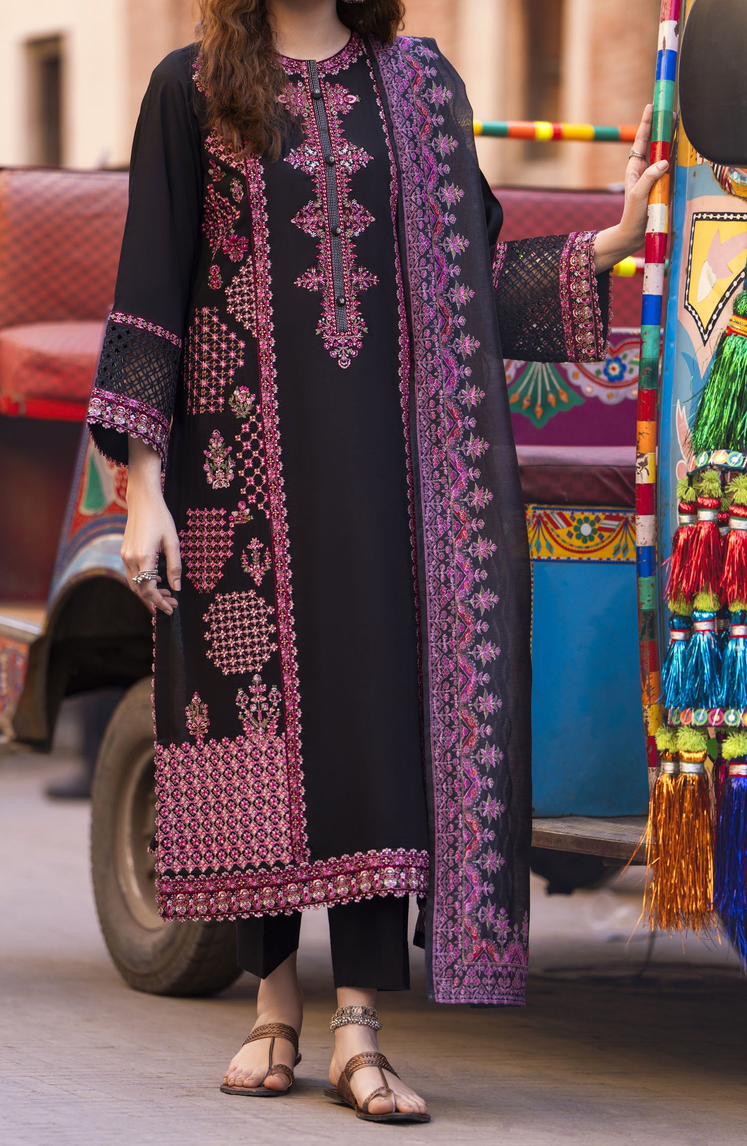 Bazaar by Casual Lite Embroidered Lawn Stitched 3 Piece Suit - D-03 - CL25BSV2 - Black - Summer Collection