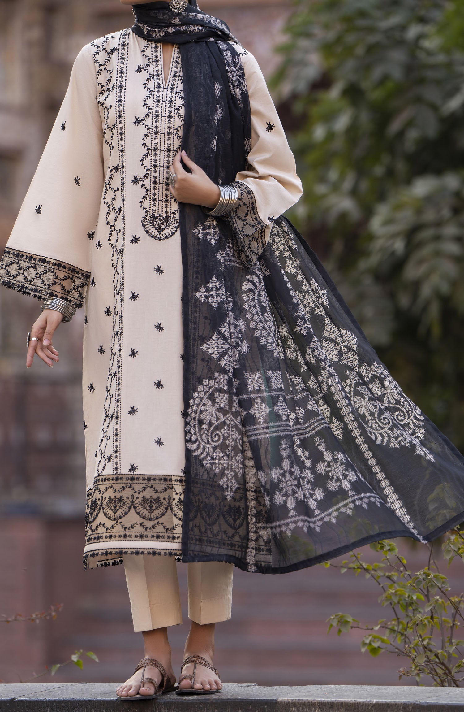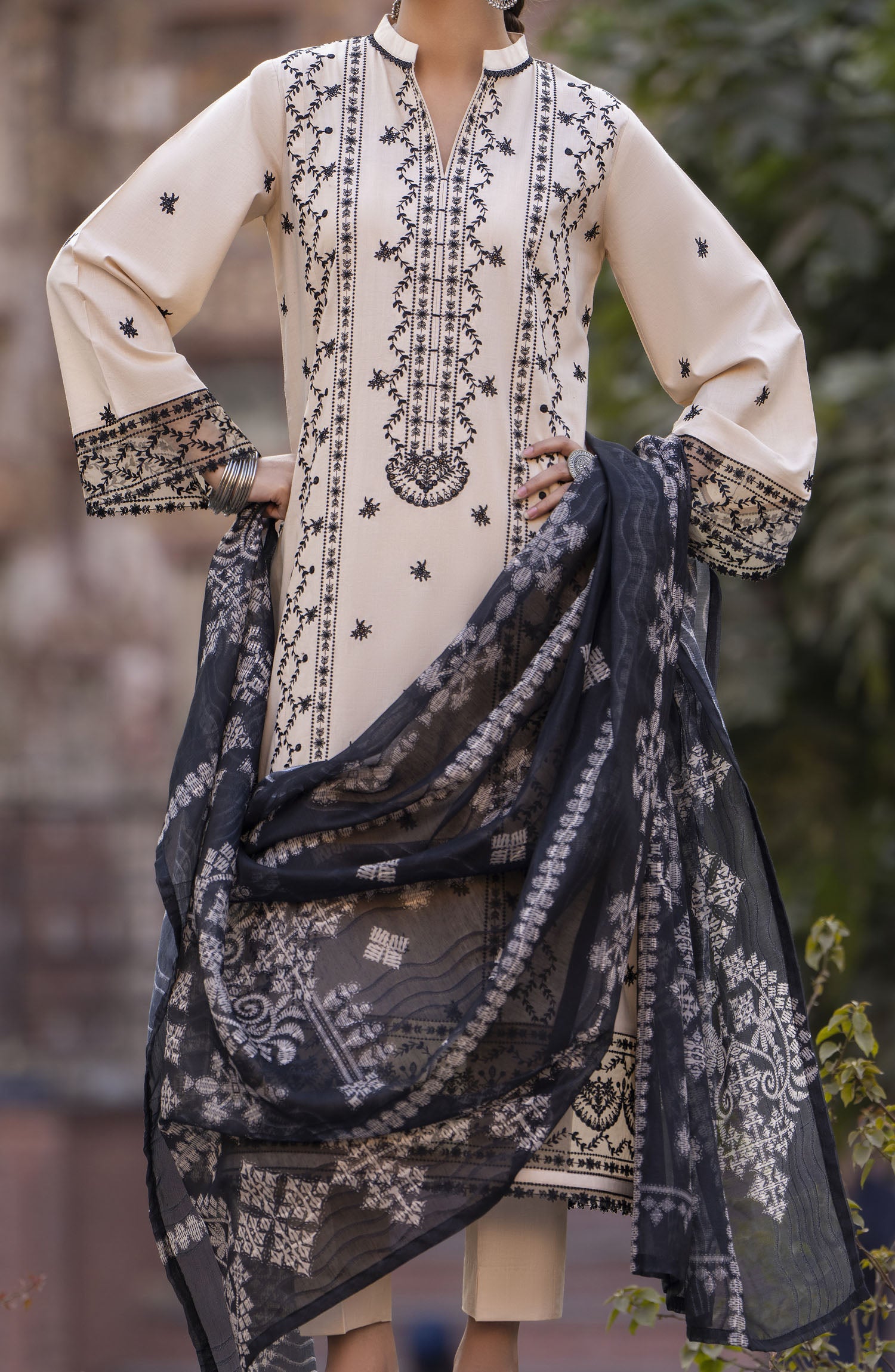 Home Bazaar by Casual Lite Embroidered Lawn Stitched 3 Piece Suit - D-04 - CL25BSV2 - Off White - Summer Collection